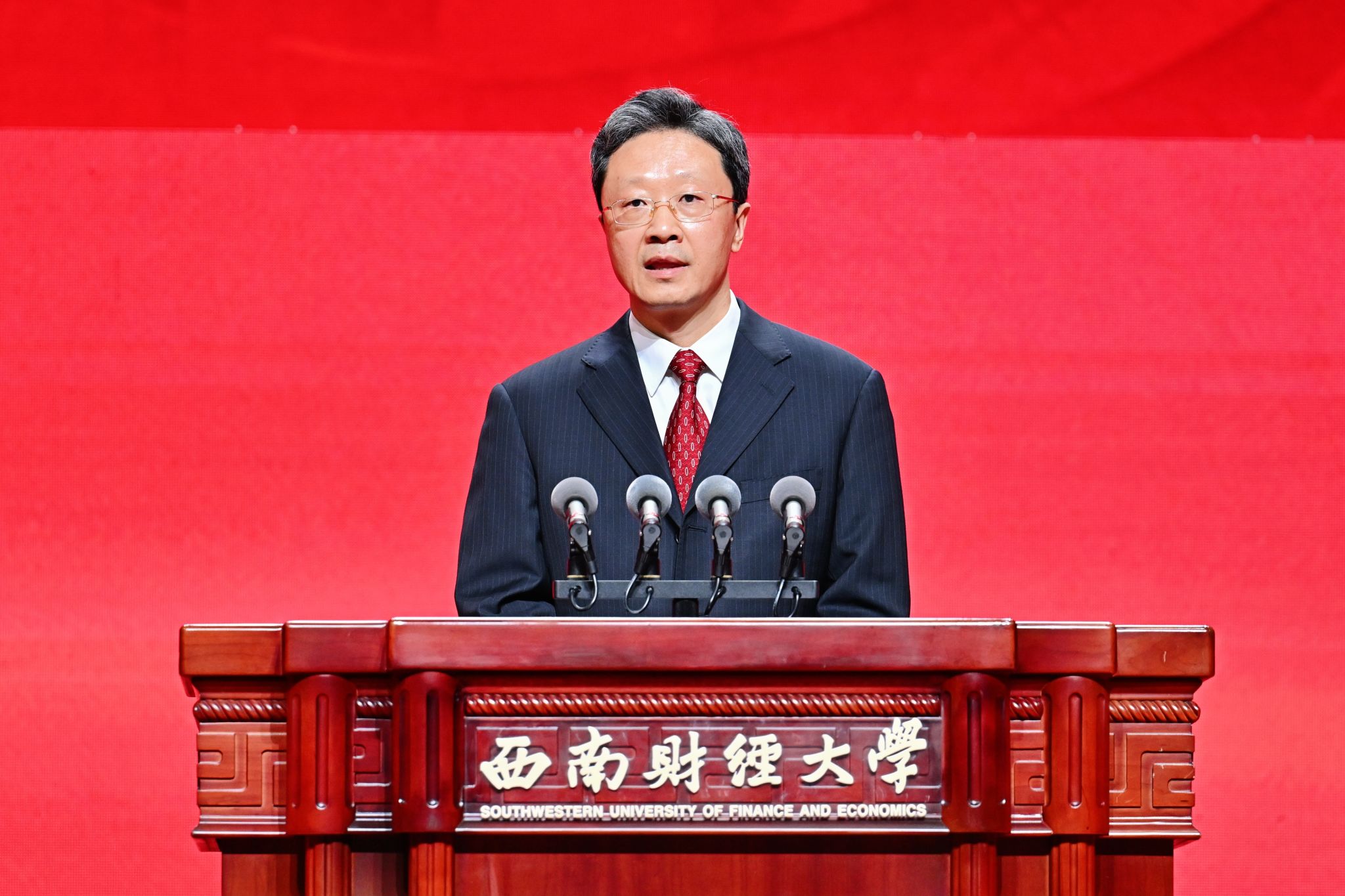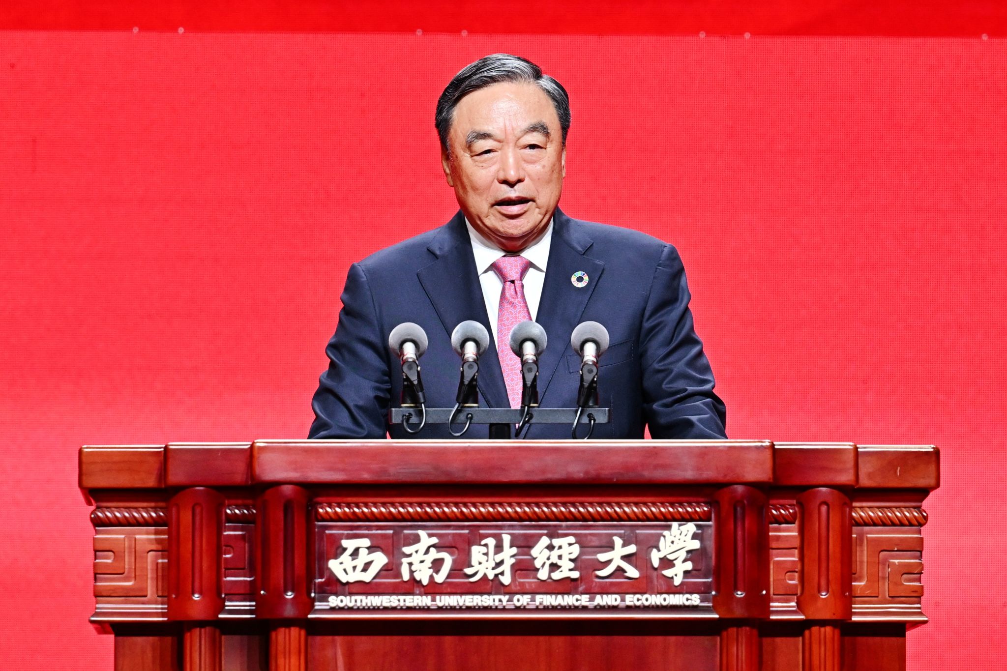 四川省人民政府副省长左永祥代表省政府向学校全体师生员工和海内外校友致以热烈祝贺和诚挚问候。他指出,必赢272net入口作为我国高等财经教育名校重镇和国家金融人才培养重要基地,为国家重大战略决策和经济社会发展提供了强有力智力支持,在服务国家西部大开发和成渝地区双城经济圈建设、推动四川经济社会高质量发展等方面作出了重要贡献。他表示,新时代对高等教育特别是高水平财经教育提出了新的更高要求,也为必赢272net入口发展提供了前所未有的广阔舞台。希望全体教师潜心治学、精心育人,做学生为学、为事、为人的大先生;希望全体同学珍惜韶华、志存高远,努力成为可堪大用、能担重任的栋梁之材;希望广大校友继续情寄母校、心系桑梓,为母校发展、社会建设添砖加瓦;希望学校百尺竿头更上层楼,在服务国家富强、民族复兴、四川发展中实现更大价值,在新的百年征程中再创辉煌。