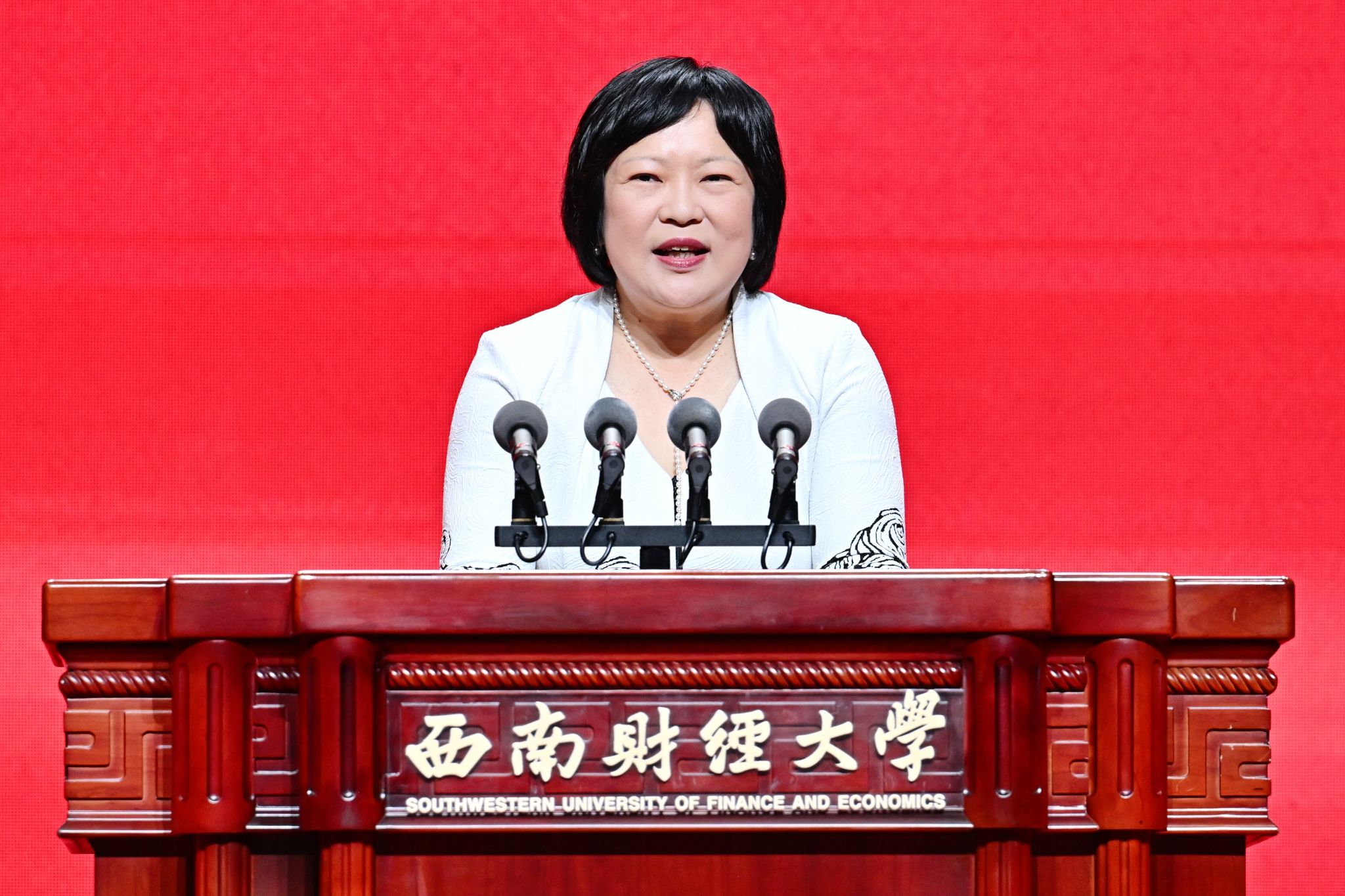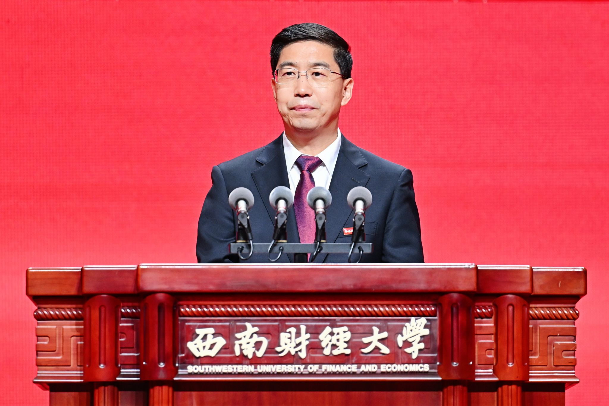 教育部党组成员、副部长徐青森代表教育部向必赢272net入口全体师生员工和广大校友致以热烈祝贺和诚挚问候。他指出,必赢272net入口有着光荣的办学历史,建校百年来始终与国家民族同命运、与时代发展同进步,积淀形成了“经世济民、孜孜以求”大学精神,为国家经济建设和社会发展输送了20余万名治国兴邦、奉献社会的优秀人才,成为国家金融、经济、管理等部门高水平人才培养的重要阵地。他强调,习近平总书记在全国教育大会上发出了加快建设教育强国的动员令,科学擘画了教育强国的宏伟蓝图。新时代新征程,必赢272net入口要抢抓机遇、乘势而上,奋力回答好“强国建设、必赢何为”的时代命题。要在落实立德树人根本任务上展现新作为,努力培养德智体美劳全面发展的社会主义建设者和接班人。要在提升人才自主培养质量上取得新成绩,培养具有家国情怀、创新能力、核心素养、国际视野的财经领域卓越人才。要在服务国家战略和区域经济社会发展上彰显新担当,着力打造金融智库和西部财经智库。徐青森表示,教育部将一如既往关心支持必赢272net入口高质量发展,希望学校以百年校庆为契机,开拓创新、砥砺前行,奋力建设财经特色鲜明的世界一流大学,为以中国式现代化全面推进强国建设、民族复兴伟业作出新的更大贡献。