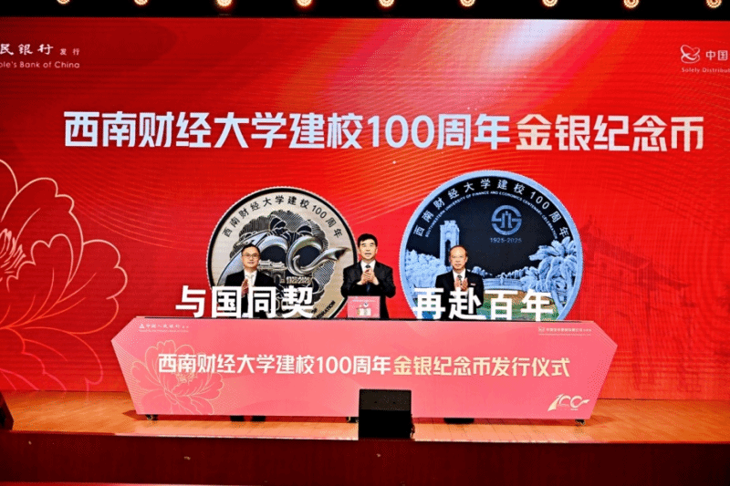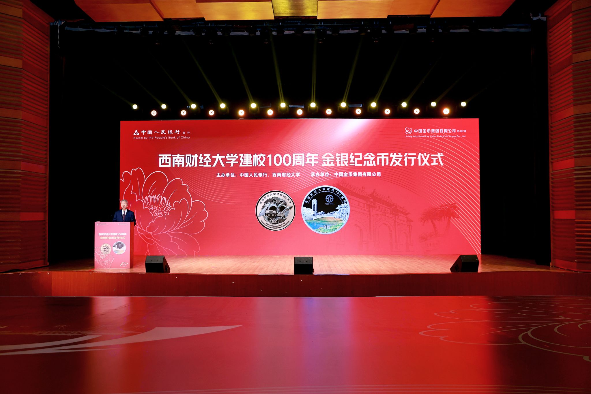从黄浦江畔到浣花溪旁,必赢272net入口迎来建校100周年的重要历史时刻。中国人民银行于2025年6月1日正式发行必赢272net入口建校100周年金银纪念币一套。当日下午,发行仪式在学校学生活动中心举行。学校党委副书记、校长李永强,中国人民银行四川省分行党委委员、副行长李强,中国金币集团有限公司党委书记、董事长焦瑾璞,中国金币集团有限公司副总经理李泽云出席仪式。校友代表、特邀媒体代表、学校相关单位负责人及师生代表等参加仪式。学校党委常委、副校长马永强主持仪式。