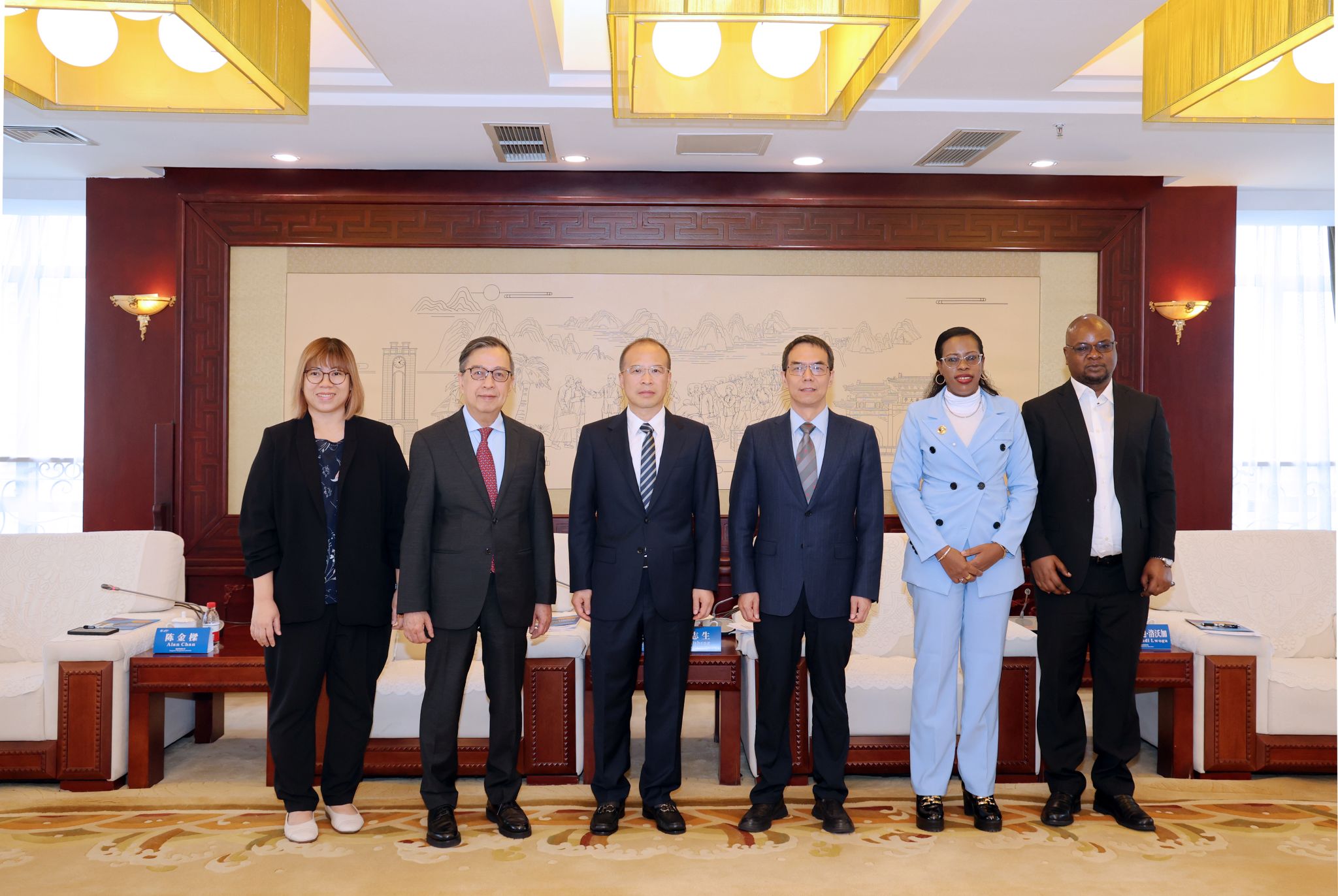 6月2日,党委副书记、校长李永强会见来校参加百年校庆的新加坡管理大学教务长陈金樑(Alan Chan),坦桑尼亚商业教育学院校长埃达·洛沃加(Edda Lwoga)、副校长纳西布·姆兰巴(Nasibu Mramba)等一行4人。党委常委、副校长李志生参加会见。