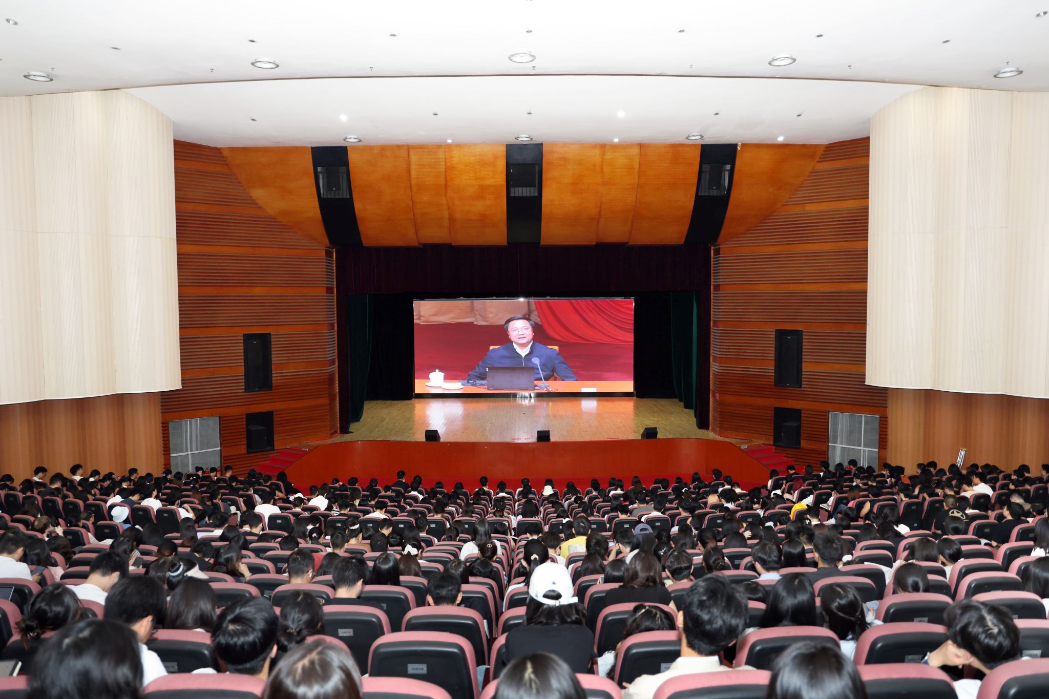 集中大课主会场设在柳林校区弘远楼105会议室,全体在校校领导,学院(研究院)行政主要负责人,机关与直属单位党员代表,离退休教职工党员代表,思政理论课教师代表,教师党支部书记代表和学生党支部书记代表到场参加培训。全校其他师生党员在两校区65个分会场同步参加此次大课。