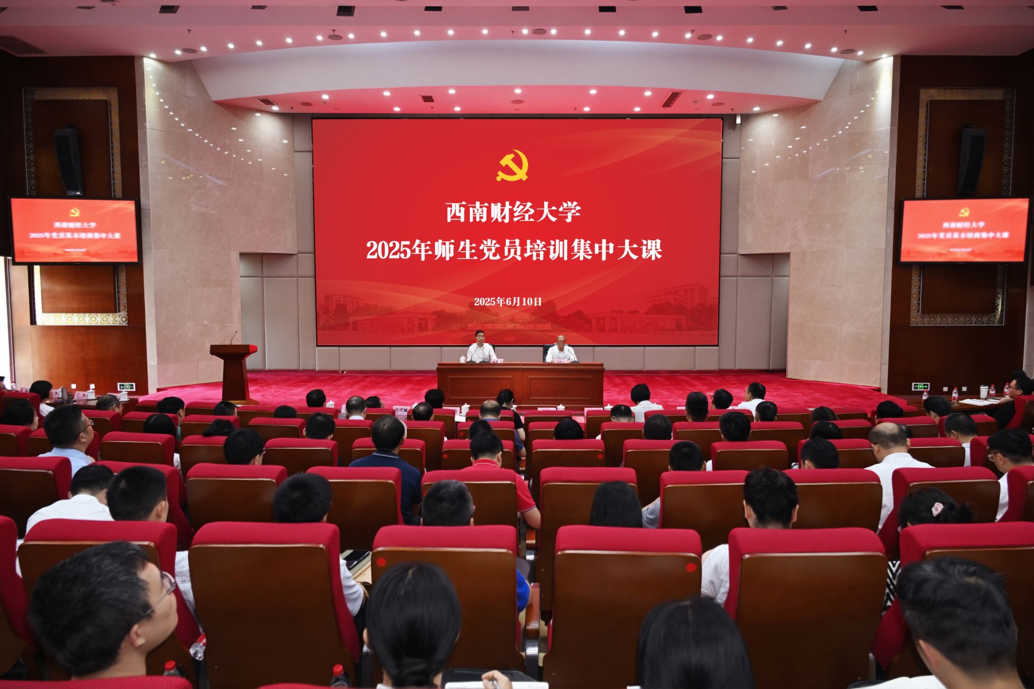 为深入学习贯彻习近平新时代中国特色社会主义思想,加强全体师生党员党性修养和理论素养,进一步提升党员教育培训工作实效,6月10日下午,学校举行2025年师生党员培训第一次集中大课,观看学习中央党校(国家行政学院)党的建设教研部副主任祝灵君教授讲授的“学习贯彻习近平总书记关于加强党的作风建设的重要论述和中央八项规定精神”专题课程。学校党委书记赵建军讲话,并以《深入学习贯彻习近平总书记关于加强党的作风建设的重要论述 以作风建设新成效开创高质量发展新局面》为题讲专题党课。教育部直属高校党建工作联络员朱健梅,四川省委教育工委有关处室负责同志到会指导。学校党委副书记、校长李永强主持培训。