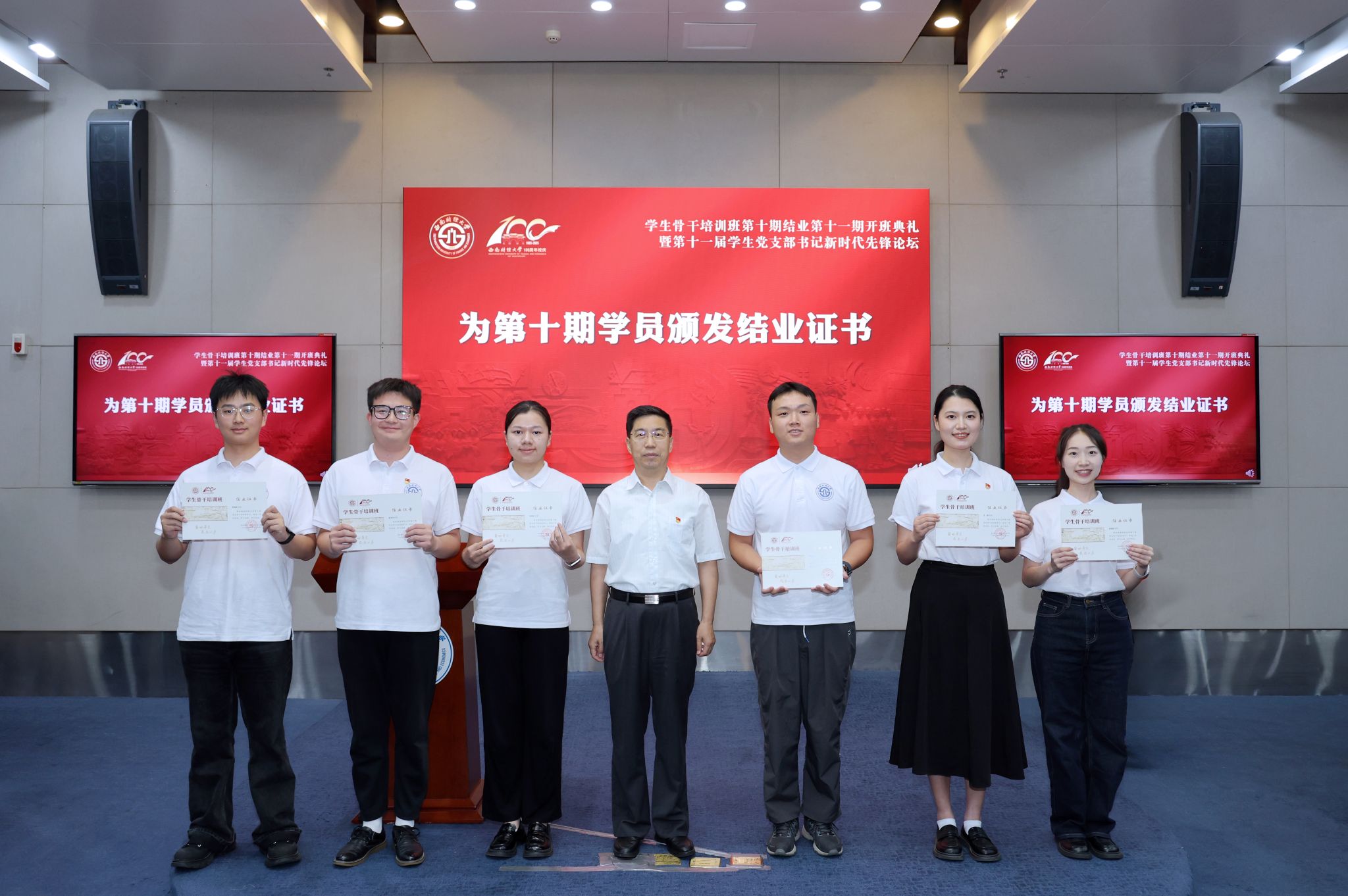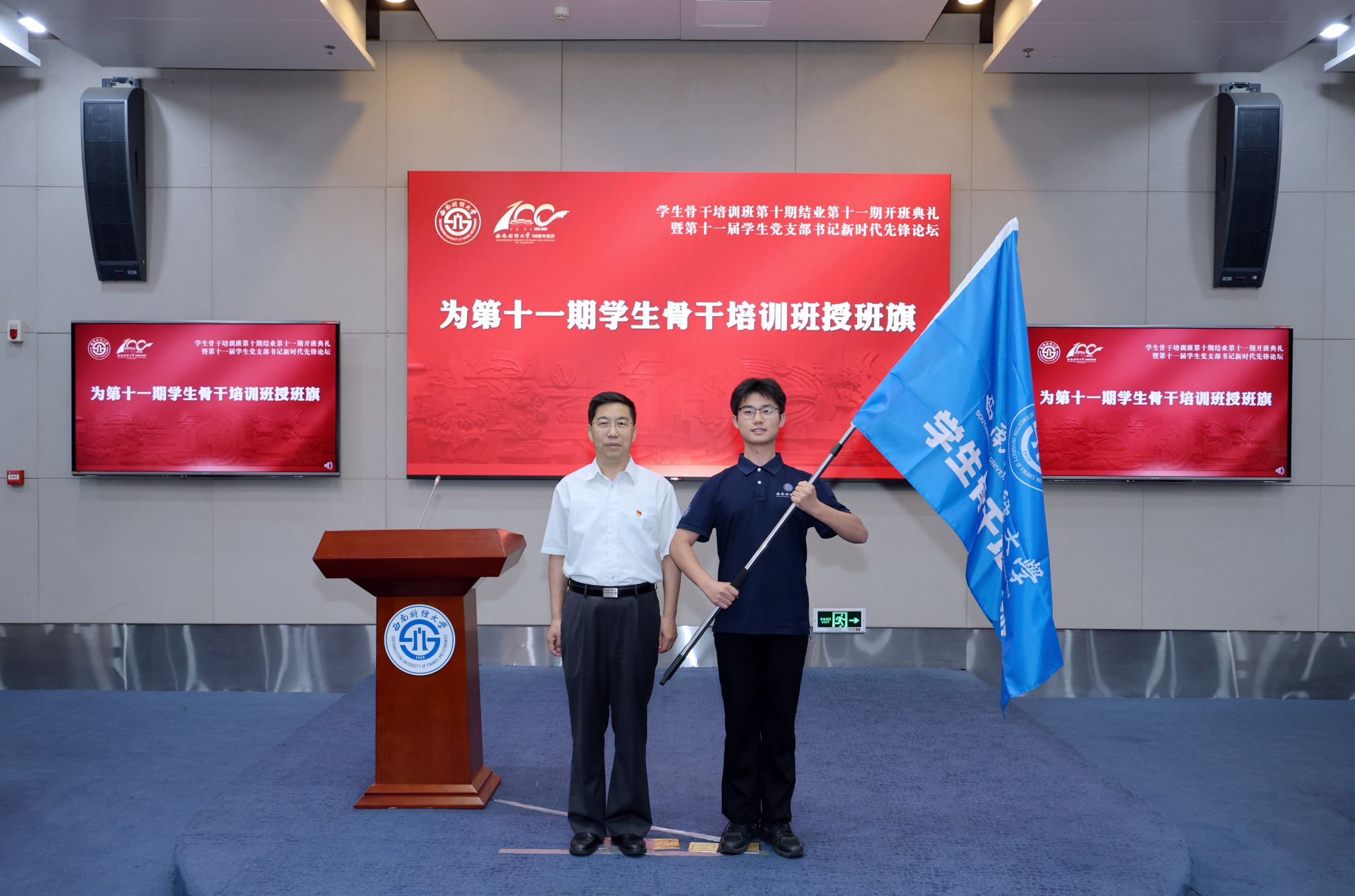 赵建军为第十期学生骨干培训班学员颁发结业证书,为第十一期学生骨干培训班授班旗,与会人员一起听取了第十期骨干班总结汇报和第十一期学员代表发言。骨干班自2014年开班以来,已成功举办10期,结业518名学员,充分发挥优秀学生骨干示范引领作用,激励必赢青年在推进强国建设、民族复兴伟业中展现青春作为、彰显青春风采、贡献青春力量。
