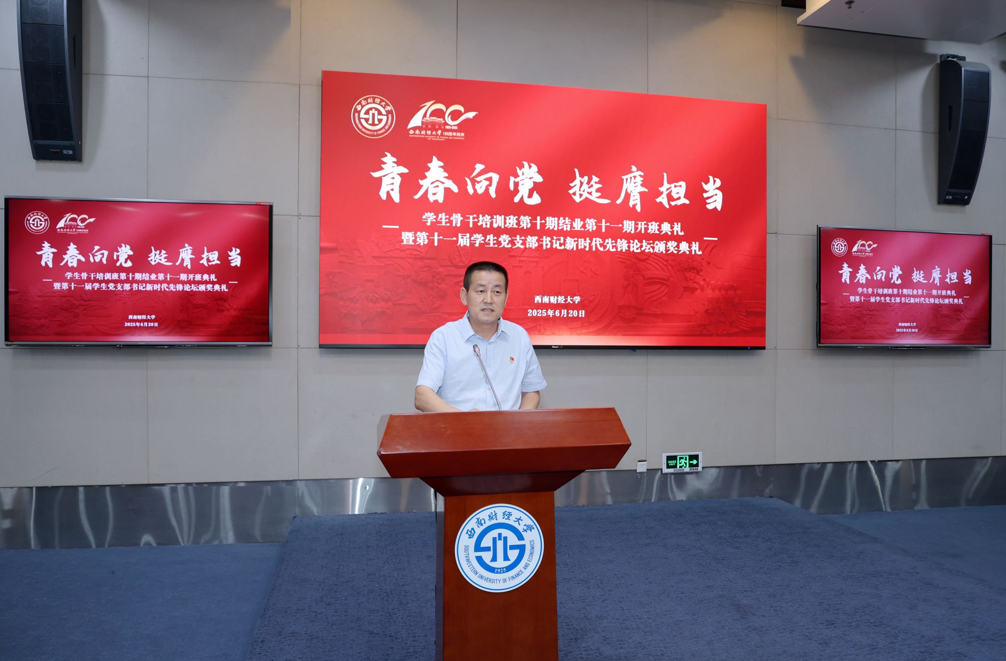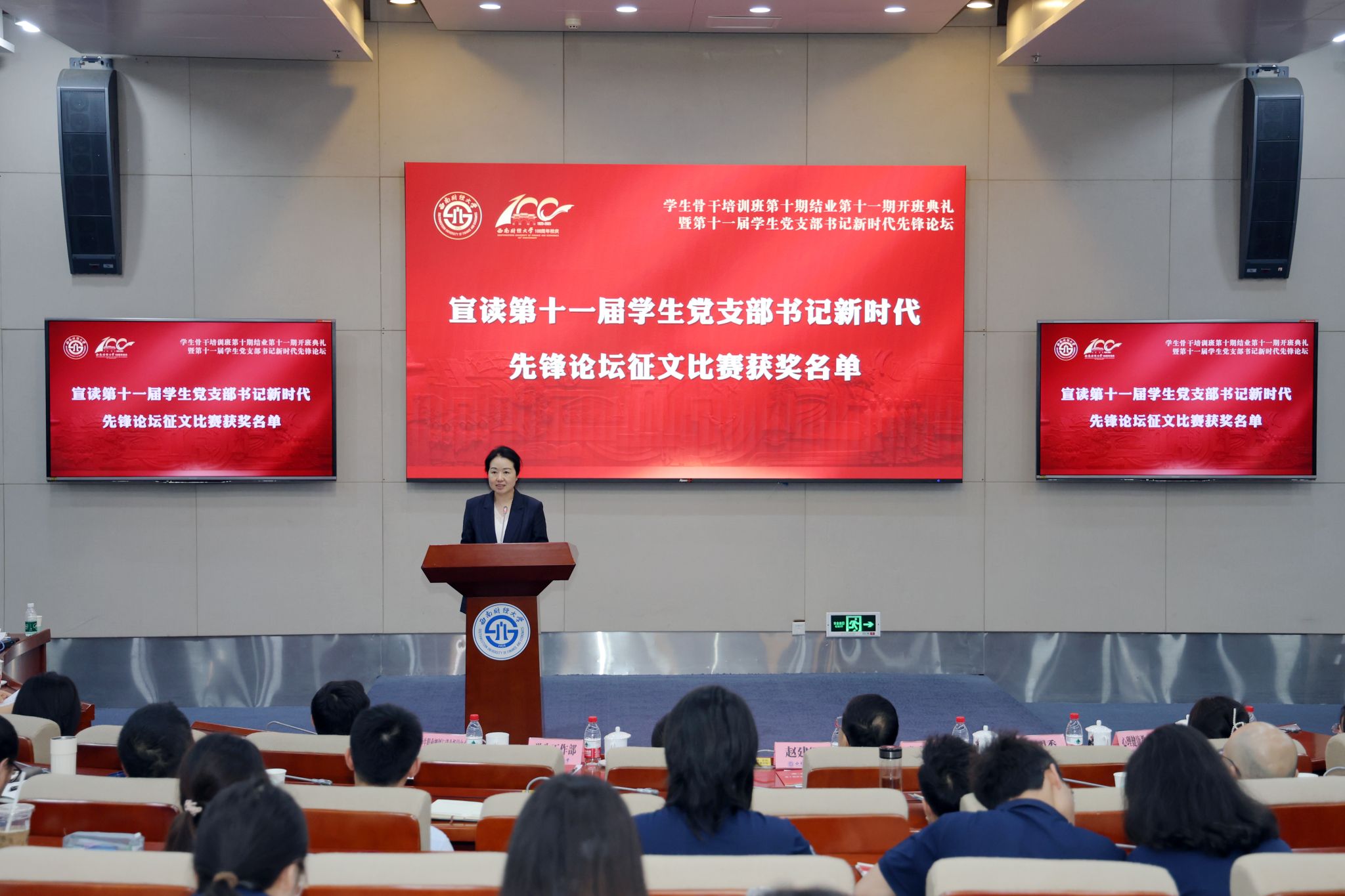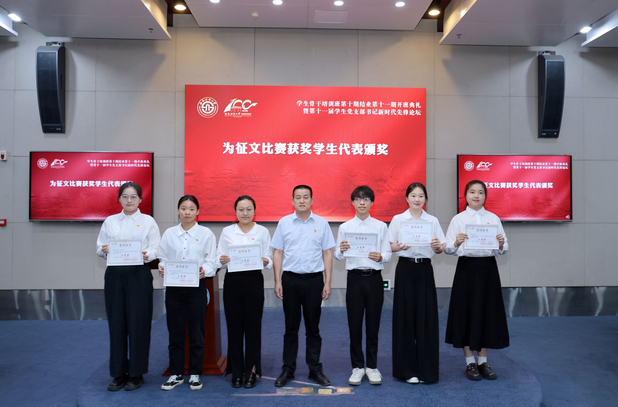 6月20日下午,学校学生骨干培训班第十期结业第十一期开班暨第十一届学生党支部书记新时代先锋论坛颁奖典礼在柳林校区弘远楼101会议室举行。党委书记赵建军、党委副书记明海峰出席典礼。