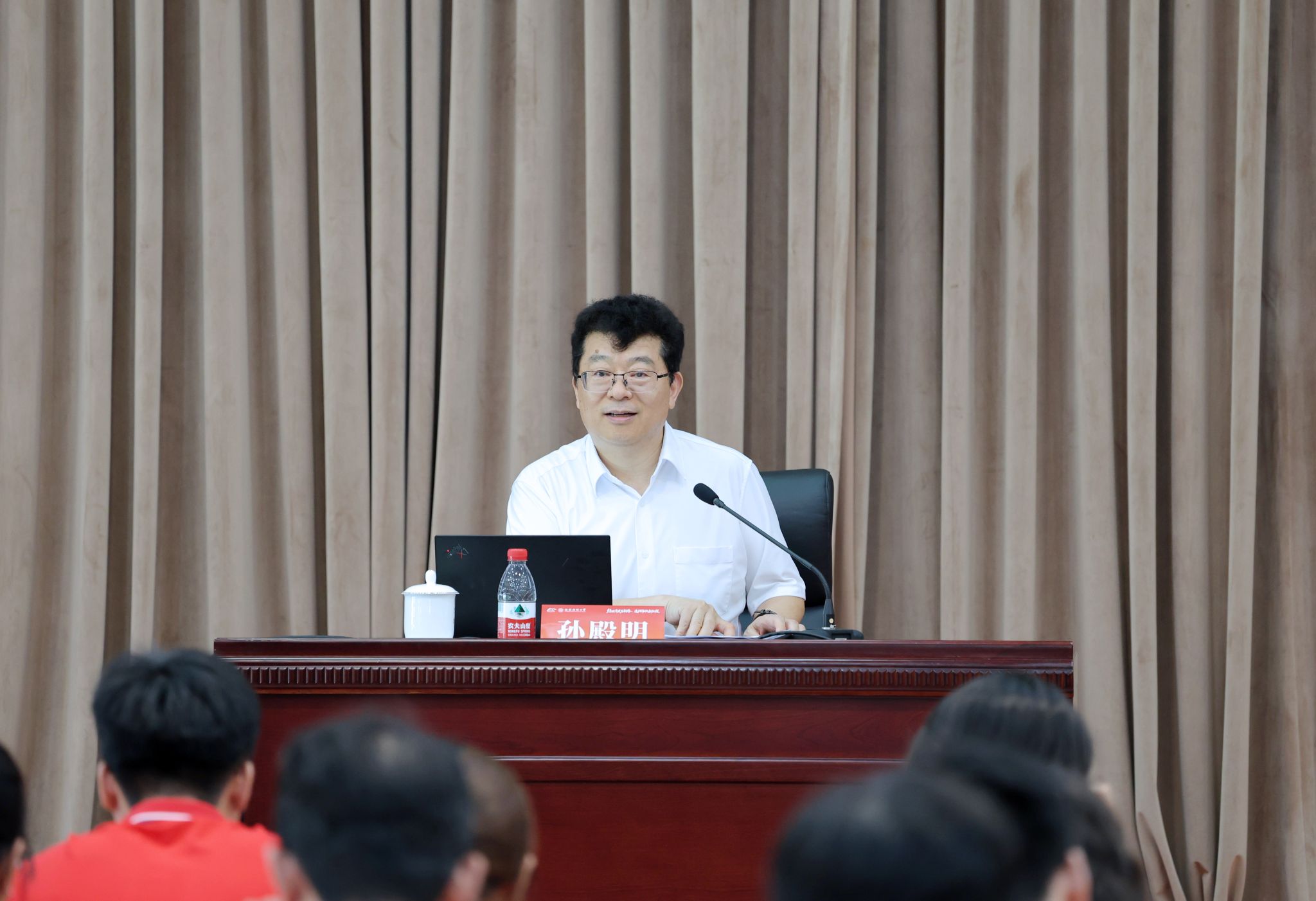 孙殿明以《厚植根基固正气、接续奋斗勇前行,自觉在新时代新征程上永葆廉洁本色》为题为全体选调生讲授廉洁教育专题课。结合当前反腐败斗争形势及年轻干部违纪违法典型案例,孙殿明从新时代廉洁教育的重要意义、反腐败斗争的新形势新特征、青年干部廉洁修身的实践要求三个维度进行系统阐释,为即将奔赴基层的学子敲响廉洁自律警钟。孙殿明指出,廉洁教育是落实立德树人根本任务的重要内容,是青年成长成才的人生航向标,更是关乎强国建设的战略工程,希望考取选调生的毕业生坚持理论学习,自觉筑牢理想信念根基;坚持为民服务,自觉树立和践行正确政绩观;坚守纪律规矩,自觉守牢底线远离红线;坚持防微杜渐,守牢作风建设的“小事小节”。孙殿明强调,廉洁是青年从政的“护身符”、成长路上的“防护网”,希望同学们牢记习近平总书记对青年的殷切嘱托,做理想信念的坚守者、清正廉洁的践行者、必赢精神的传承者。