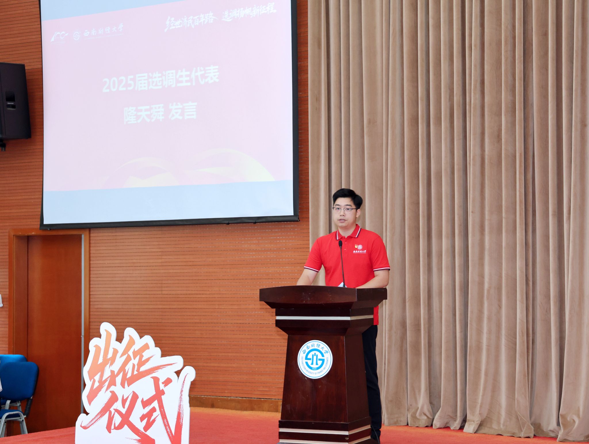 2025届毕业生隆天舜代表全体选调生发言。他深情回顾母校培育之恩,坚定表示将以“拼”的精神、“闯”的劲头、“实”的作风,将个人的“小我”融入时代的“大我”,在基层广阔天地践行“请党放心、强国有我”的青春誓言。