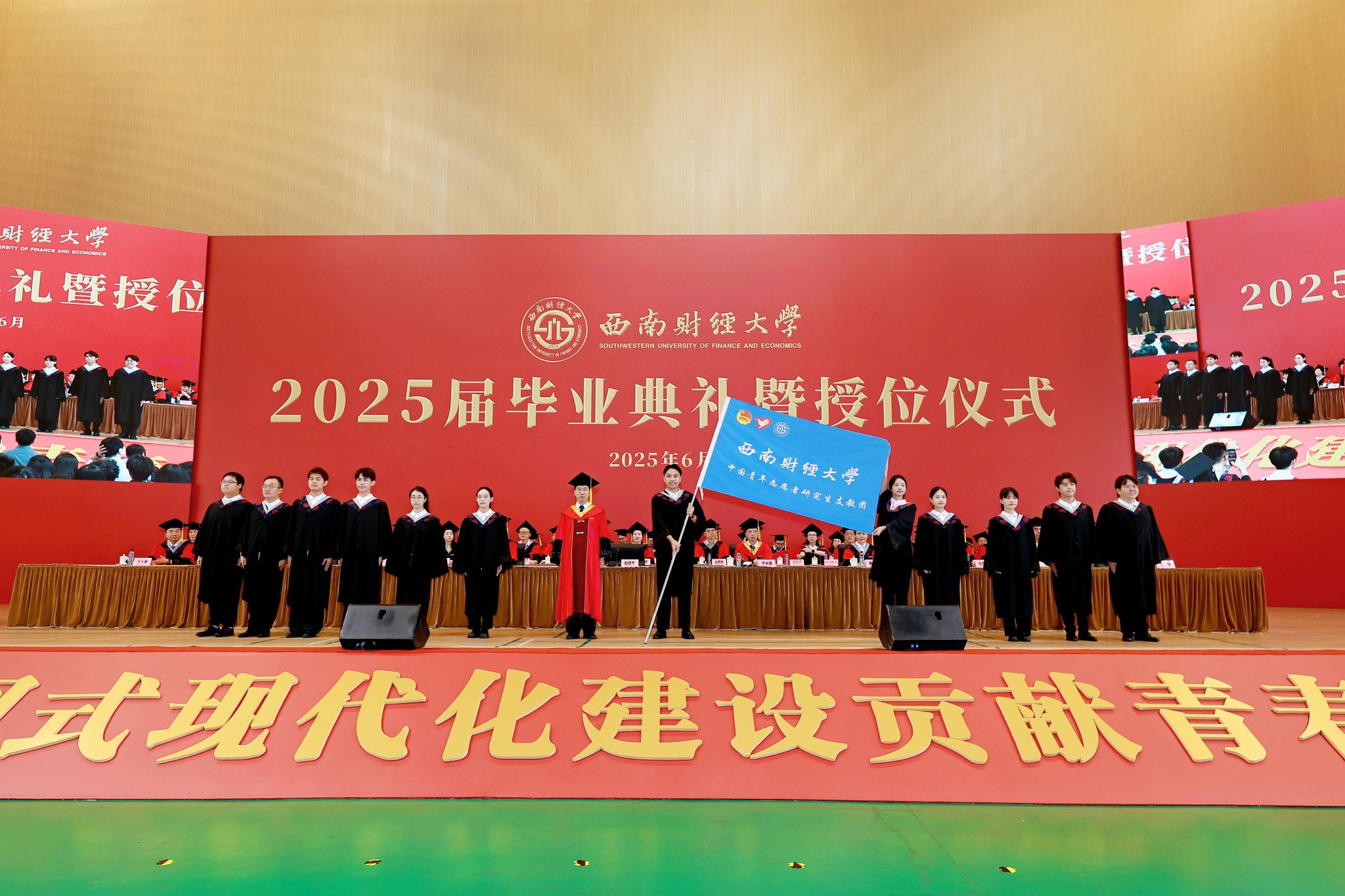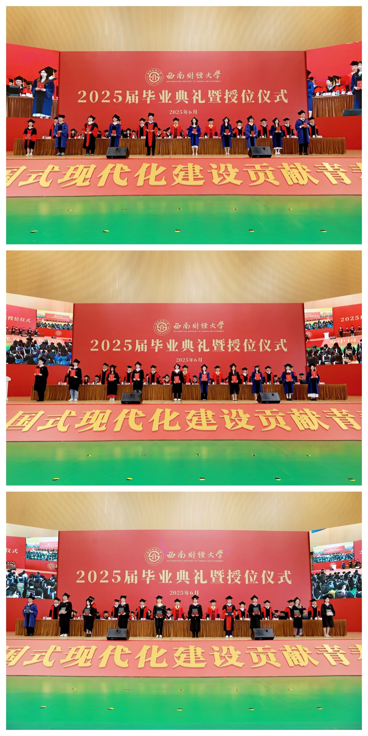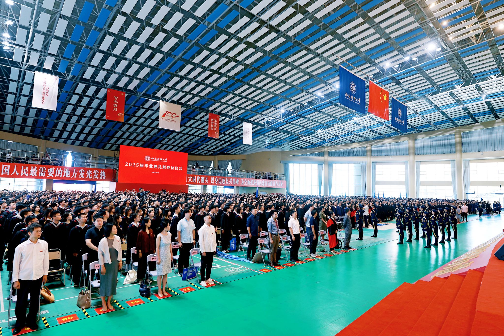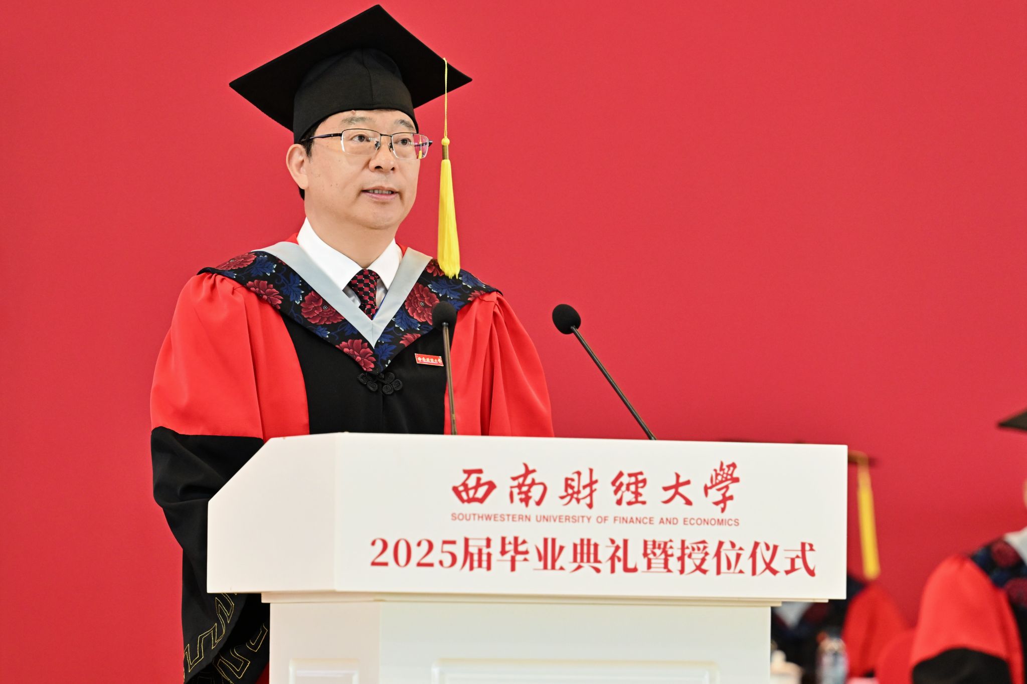 学校学位评定委员会副主席史代敏宣读授位决定,孙殿明宣读2025届优秀大学毕业生、2025年度优秀博士、硕士学位论文光华奖的表彰决定。校领导为毕业生代表颁发毕业证书和学位证书,向获奖代表颁奖。