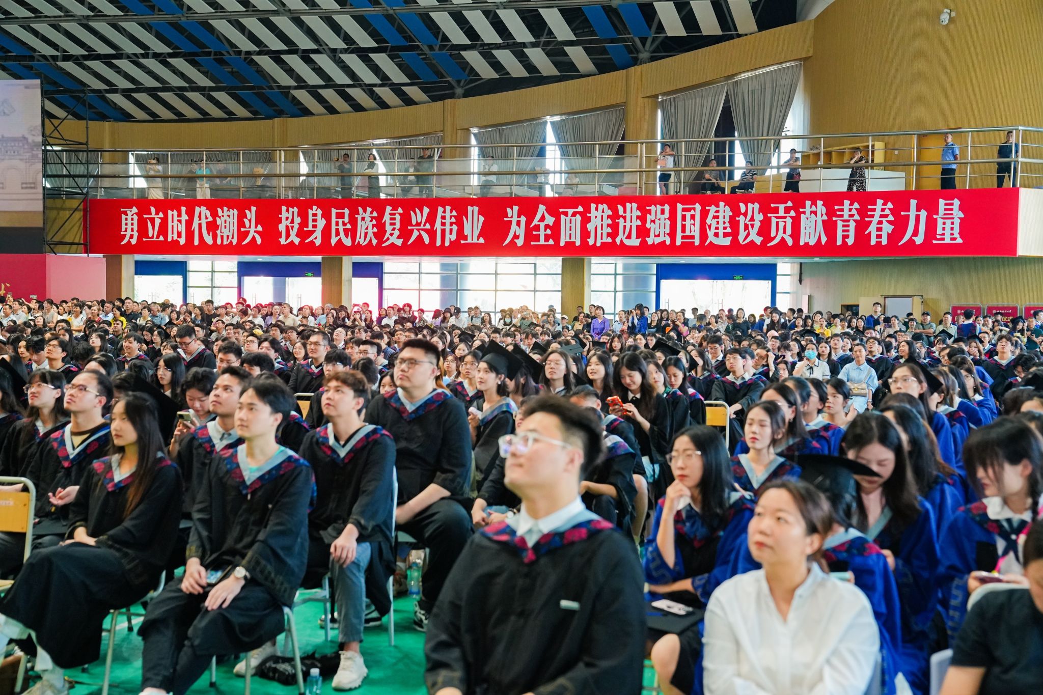 党委副书记、校长李永强以《光谱之外 自有其华》为题,与毕业生同上毕业思政大课。他向圆满完成学业的同学们致以热烈祝贺,向悉心指导、辛勤培育、关心支持同学成长成才的父母、师长和社会各界致以崇高敬意。李永强带领大家深情回望了充满家国荣耀、共沐百年荣光、书写逐梦篇章的难忘必赢岁月,勉励毕业生在充满差异的世界中勇敢探索未知、争当开路先锋,为实现中华民族伟大复兴贡献青春力量。他希望同学们敏于发现差异,做新知新觉的开路者。敏锐“捕捉”,守护好永不熄灭的好奇心和对真理不懈的探求欲,于寻常中发现新奇、于繁复中求索新知;立体“透视”,强化系统观念,多视角审视观照、大纵深比较研判,见别人之所见、见别人之未见。乐于接纳差异,做和合共生的践行者。以开放的心态、平视的眼光,倾听不同声音、称赞他人成就,欣赏差异、各美其美;用跨学科之桥串联起知识孤岛,在跨界协同和团队协作中寻找解决复杂问题的有效路径,包容差异、美美与共。勇于创造差异,做持续精进的引领者。向难处行,主动跳出舒适区、做难而正确的事,在磨砺淬炼中打开新天地,在自我突破中锻造新优势;向深处钻,满怀热忱、锚定目标持续发力,以长期主义的专注和执着,默默深耕、雕琢自己,让人生绚烂绽放。李永强动情表示,2025届毕业生是学校珍贵的“百年限定款”,诚挚祝福大家“乘风展翅,鹏程万里”。