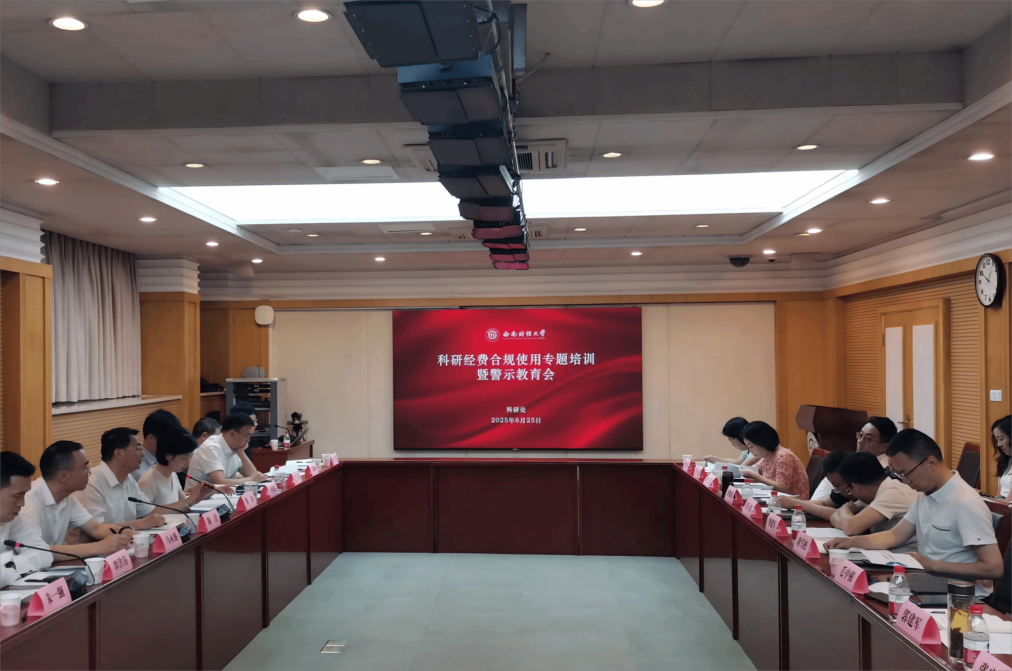 为贯彻落实中央八项规定精神,坚定不移推进作风建设,进一步规范科研经费使用,全面提升科研经费校院两级管理水平,增强科研人员廉洁自律意识,6月25日上午,科研处协同纪委办公室、监察处,财务处,审计处召开科研经费合规使用专题培训暨警示教育会。党委常委、副校长马永强出席会议。各学院(研究院)相关负责同志、科研人员代表以及科研秘书参会。科研处处长陈滔主持会议。
