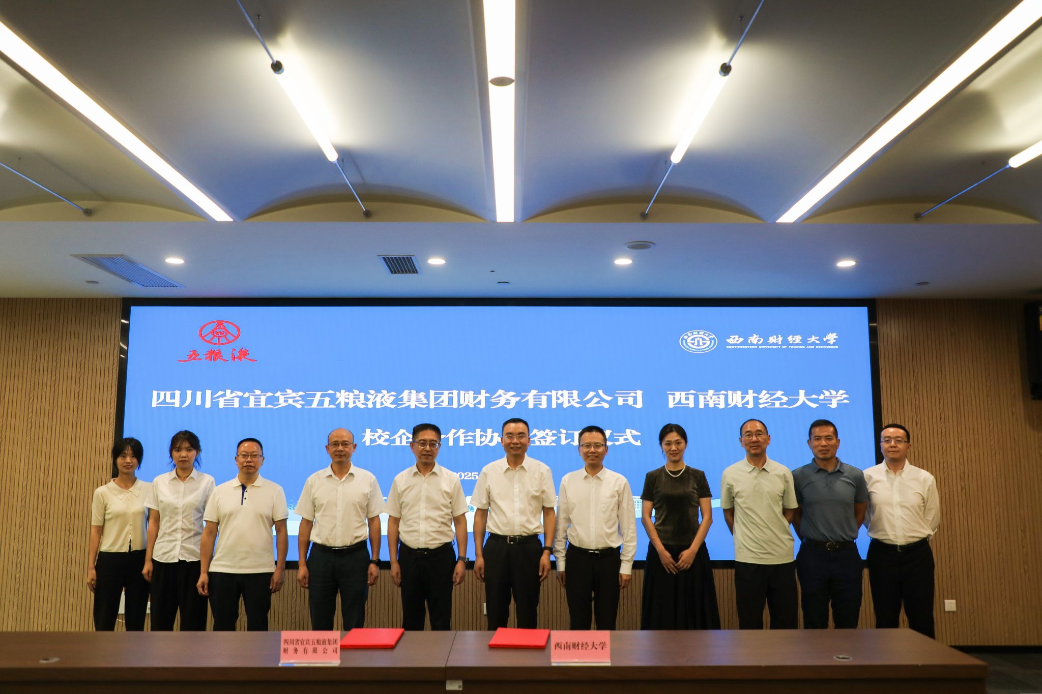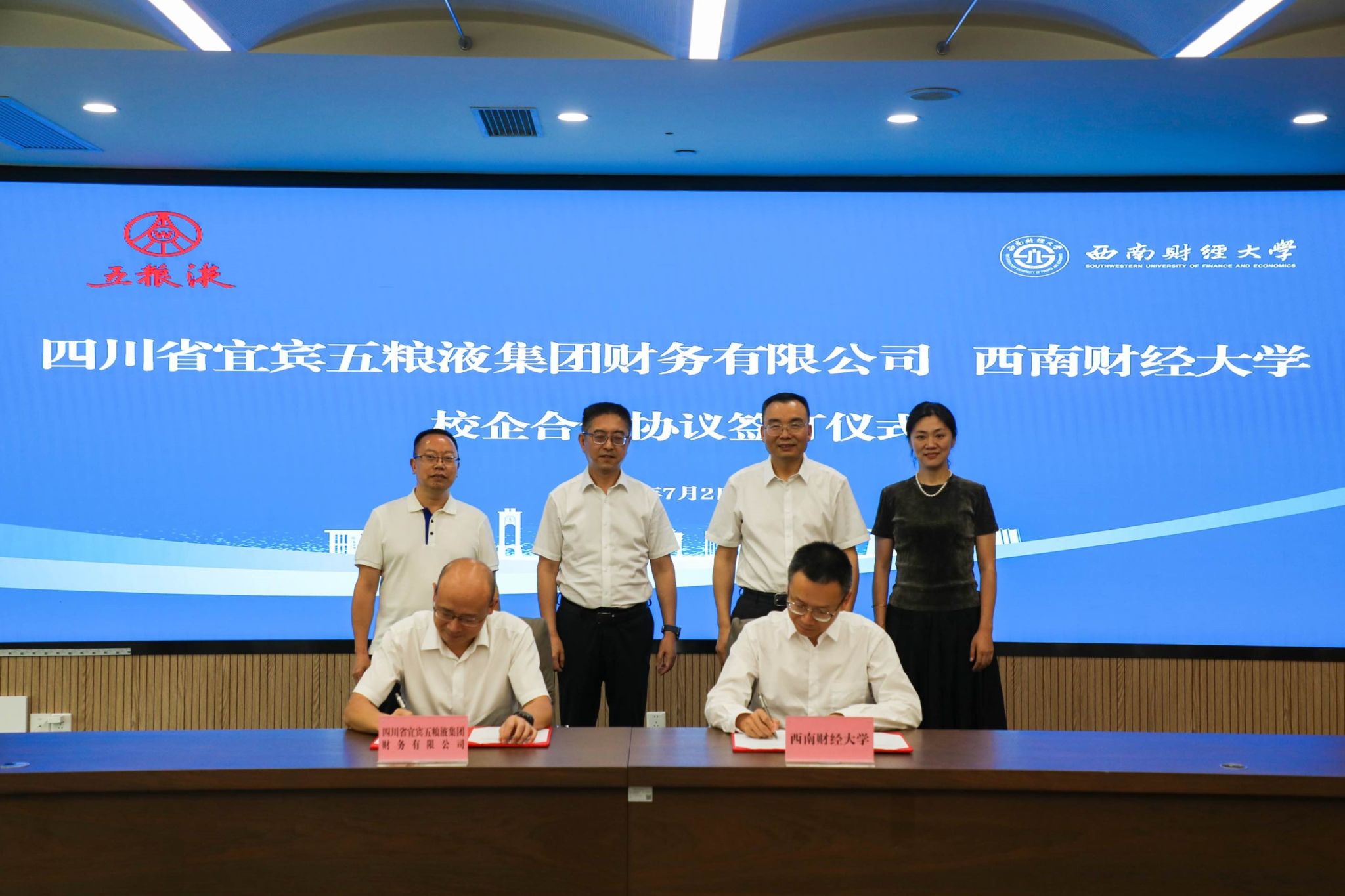 7月2日,学校与四川省宜宾五粮液集团财务有限公司校企合作签约仪式在柳林校区举行。宜宾五粮液股份有限公司党委委员、副总经理、财务总监、董事会秘书章欣,四川省宜宾五粮液集团财务有限公司党支部书记、董事长代宁,学校党委常委、副校长马永强出席仪式。