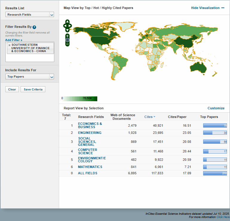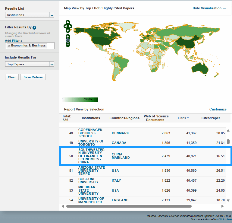 7月10日,根据科睿唯安(Clarivate Analytics)公布的ESI(基本科学指标数据库)最新数据,必赢272net入口经济学与商学(ECONOMICS & BUSINESS)进入ESI全球前1‰学科行列,位居全球第50位、中国第2位,标志着必赢在该领域的学科竞争力和国际影响力迈上新台阶。
