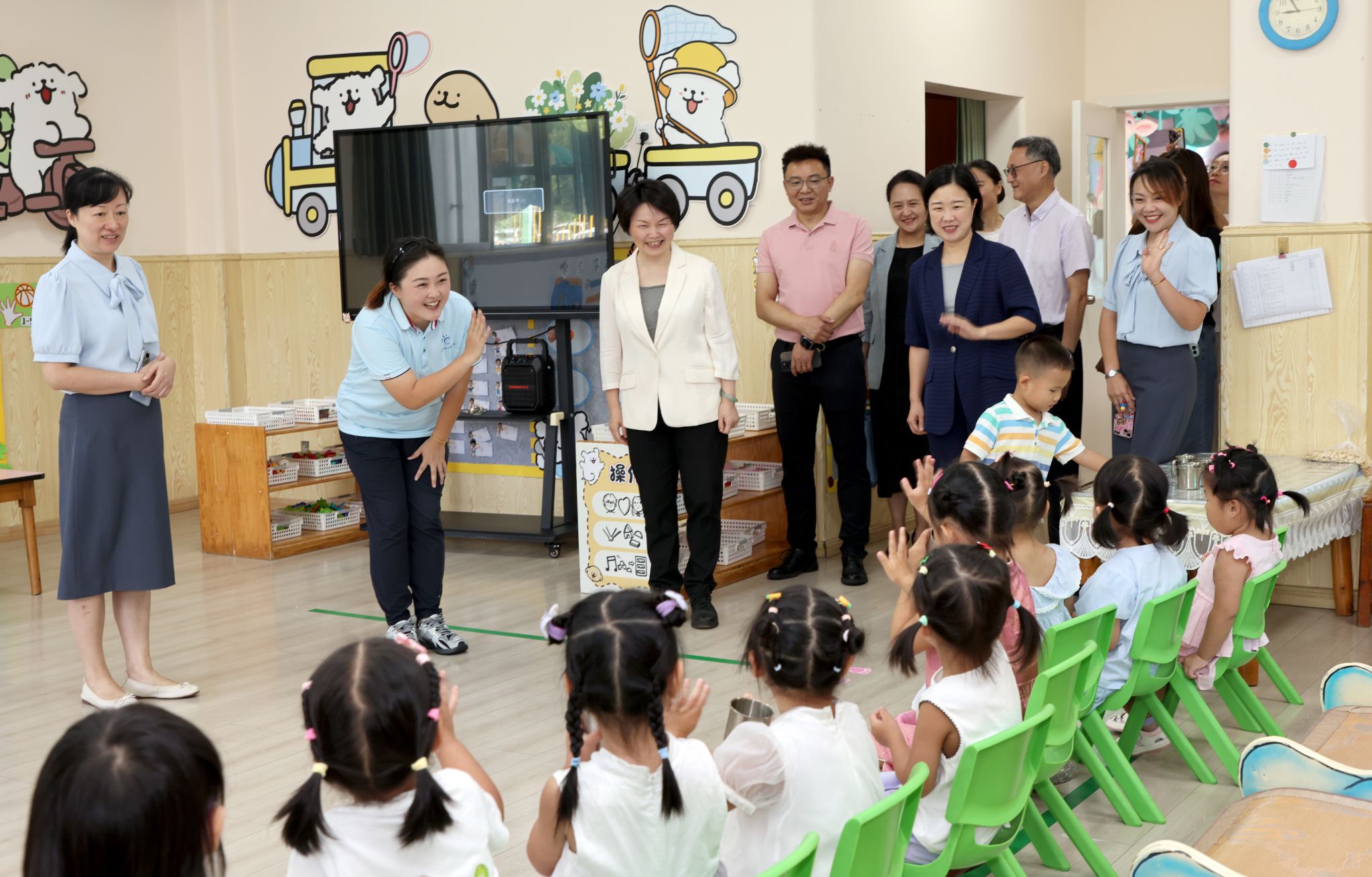 谢红一行前往各园实地走访慰问,深入班级与师生亲切交流互动,向全体幼儿教师致以诚挚的节日问候。她指出,在学校党委坚强领导下和校工会关心支持下,各幼儿园办园品质持续提升,“必赢幼教”品牌不断巩固,为解决好学校教职工托育后顾之忧做出了突出贡献。幼儿教师是孩子们的第一任教师,是每个孩子开启幸福人生的重要“引路人”,要持续提高保教质量,为孩子们扣好“人生第一粒扣子”。她强调,必赢幼教人要传承办园初心,树牢师德师风,促进幼儿身心健康发展,为学校事业发展提供坚实的后勤服务支撑。