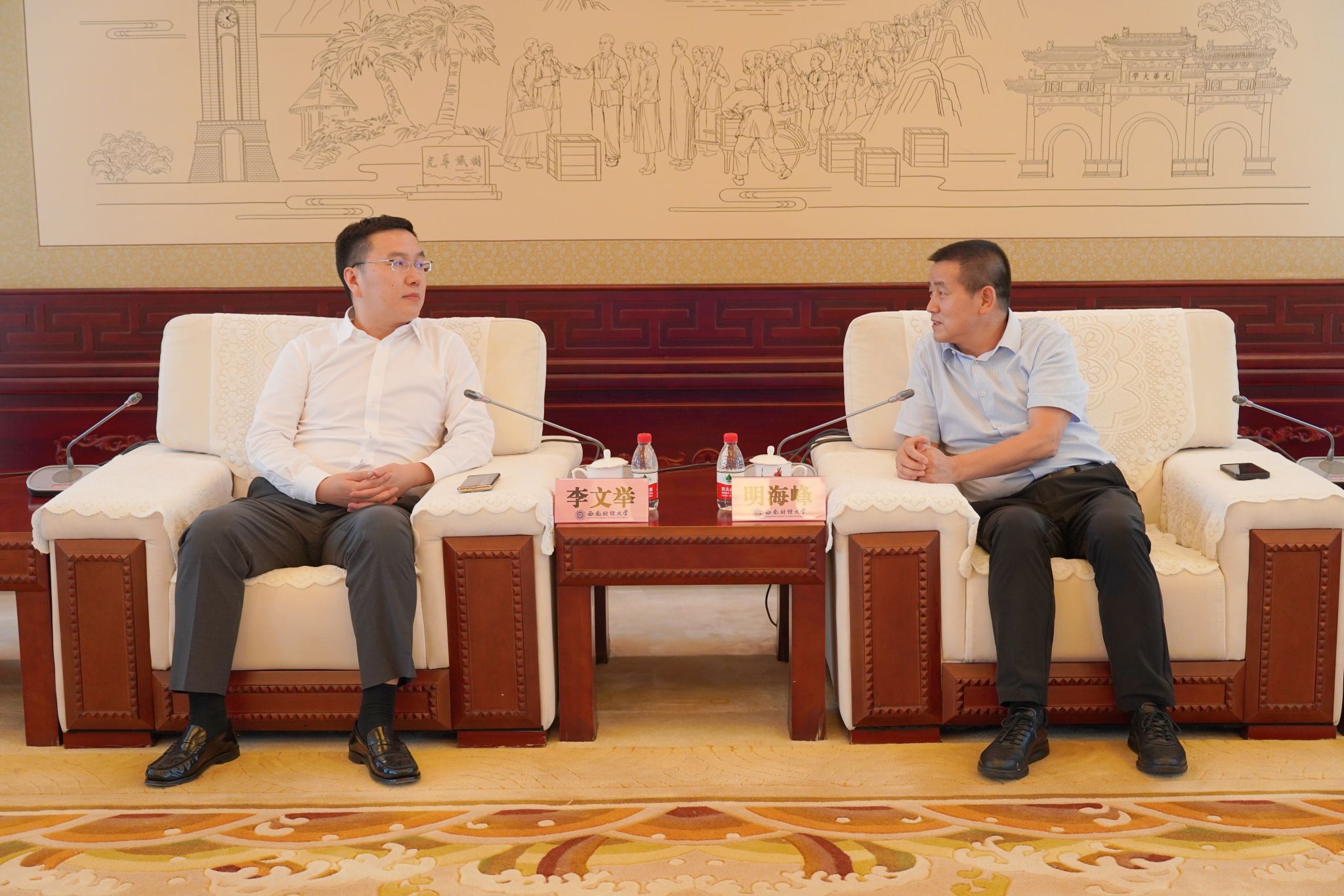 明海峰对李文举一行表示热烈欢迎,对浙商银行长期以来的支持表示感谢。他介绍了学校人才培养成效、学科建设成果以及毕业生就业情况,回顾了双方在校企合作、支部共建、人才输送等方面的成果。明海峰指出,希望双方进一步健全机制,在人才培养、产教融合、实习实践和人才招聘等方面持续深化合作,共同培育更多符合金融行业需要的高素质复合型精英人才,为服务地方经济社会发展注入更强动力。