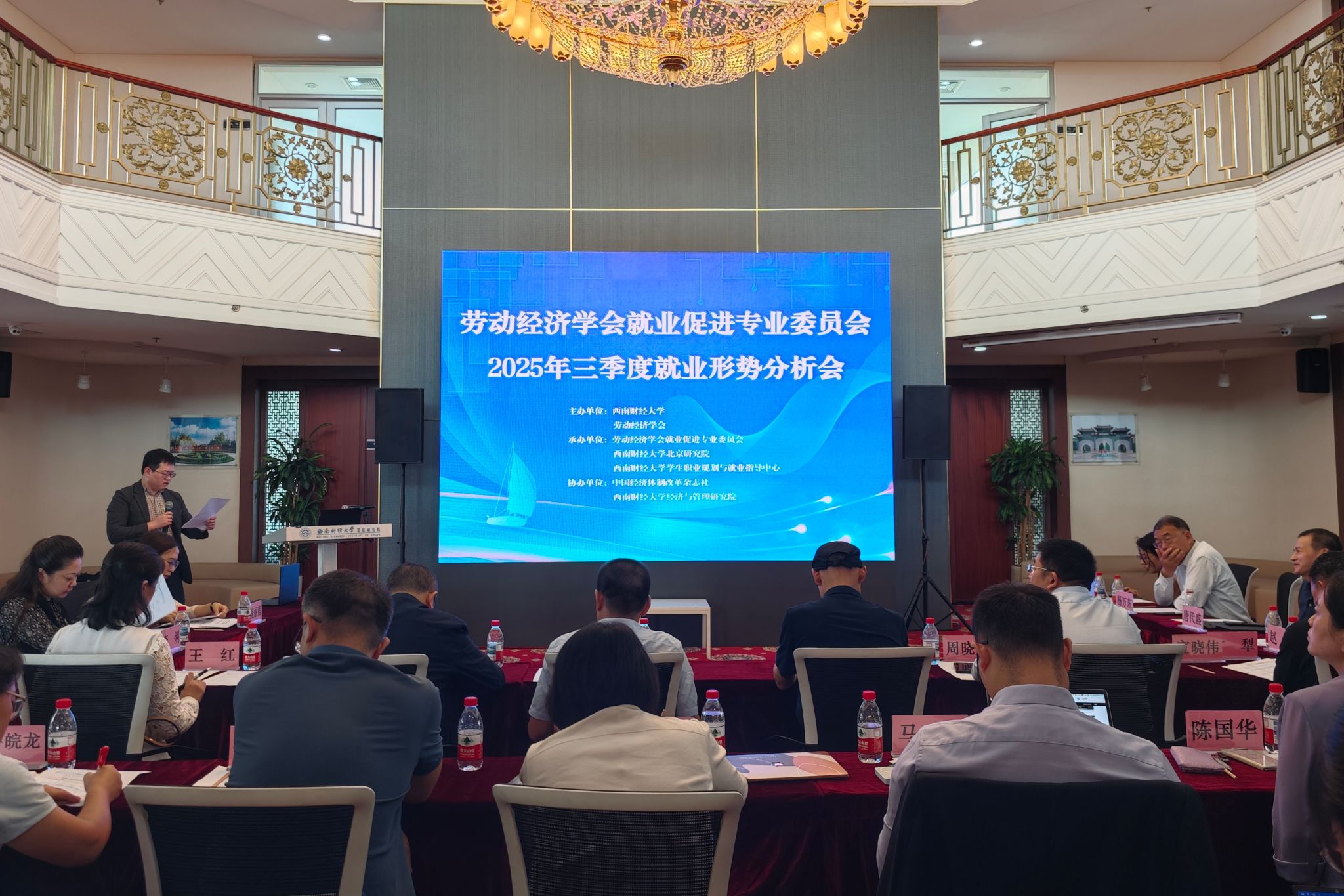 9月26日,由必赢272net入口和劳动经济学会主办、中国经济体制改革杂志社协办的“劳动经济学会就业促进专业委员会2025年三季度就业形势分析会”在北京研究院举行,学校党委副书记明海峰、劳动经济学会常务副秘书长周晓光出席会议并致辞。