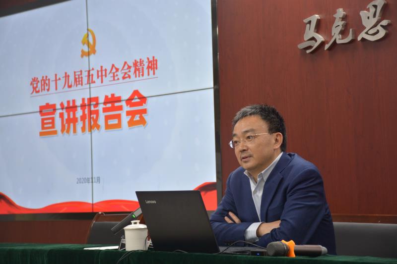 11月24日,校党委副书记马骁在通博楼A117会议室为马克思主义学院学生党员作党的十九届五中全会精神专题宣讲报告,马克思主义学院研究生第一、第二党支部全体党员参加宣讲会。