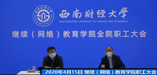 4月15日上午,继续(网络)教育学院召开新学期全院职工大会视频会议,传达学校近期工作会议精神,部署学院年度重点工作。会议由学院党总支书记殷晓明主持。