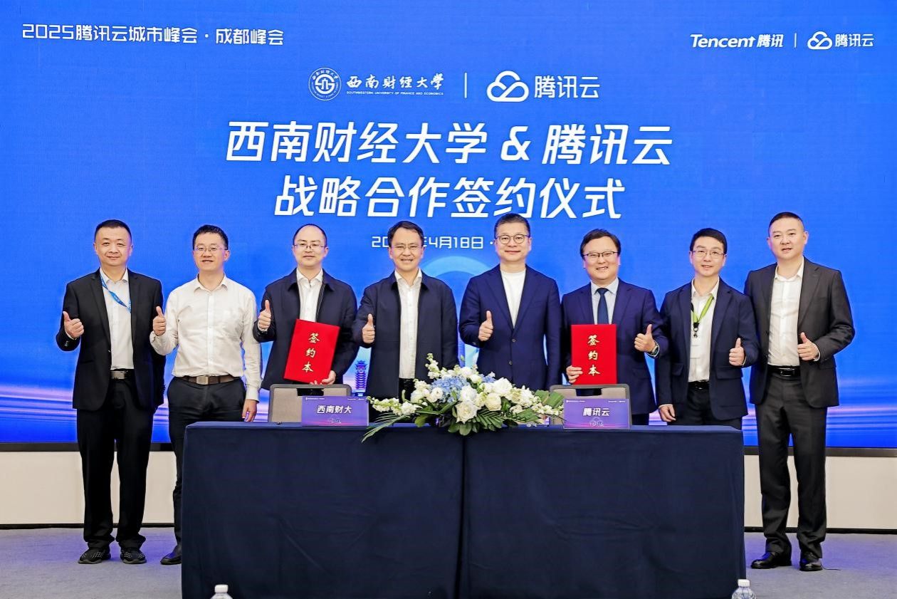 金融学院、中国金融研究院院长罗荣华,腾讯云副总裁、北区&东区总经理王前,腾讯云区域金融总经理陈化,区域西南金融总经理胡军等参加签约仪式。