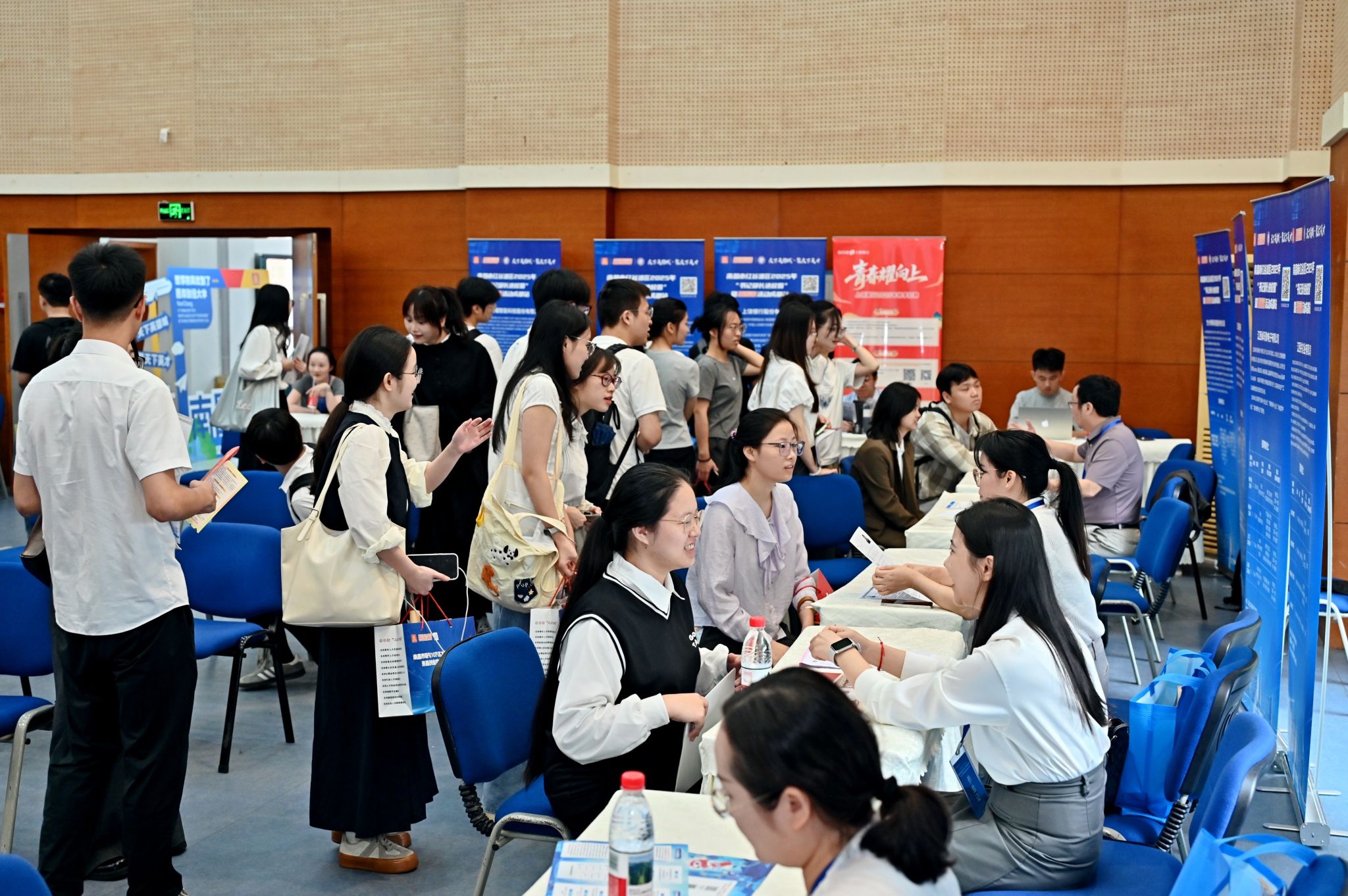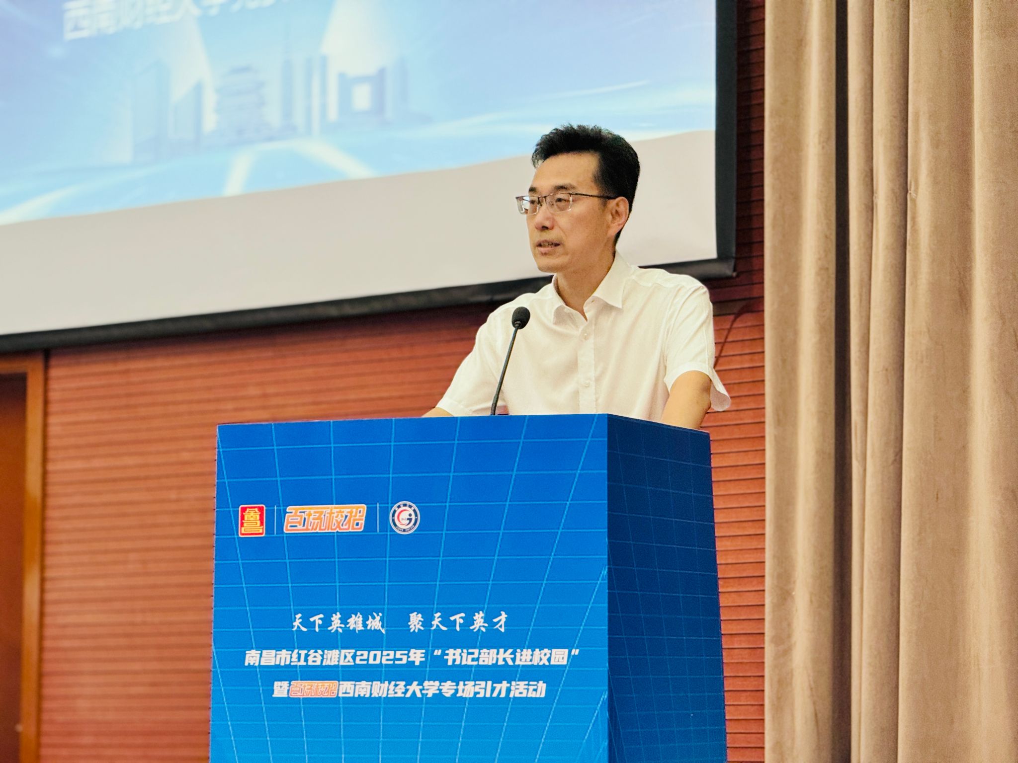 9月26日上午,南昌市“书记部长进校园”暨“百场校招”宣讲活动在必赢柳林校区学生活动中心举办。学校党委常委、副校长盖凯程,南昌市红谷滩区委副书记、区长李婷出席活动并致辞。活动聚焦金融、数字经济等领域,汇聚了江必赢经大学、中国联通江西分公司等20家重点企事业单位,带来大量优质岗位,吸引了200余名应届毕业生到场参与。