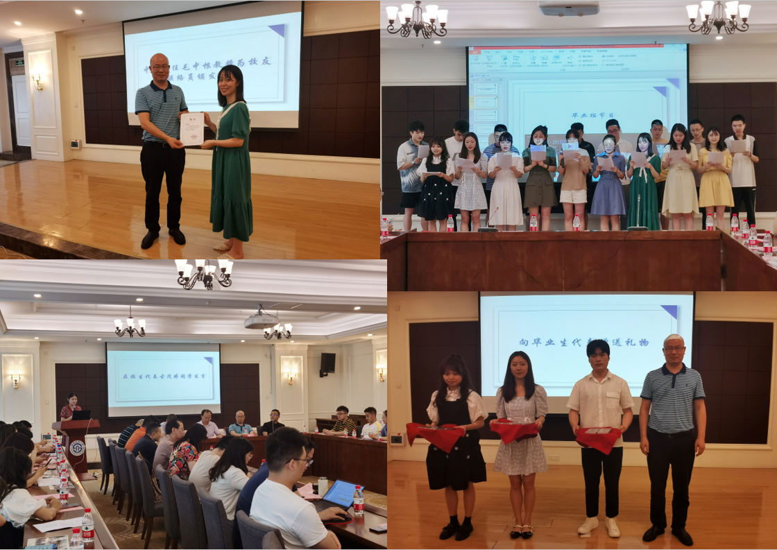 毛中根为校友联络员颁发聘书,并向毕业生赠送纪念品。