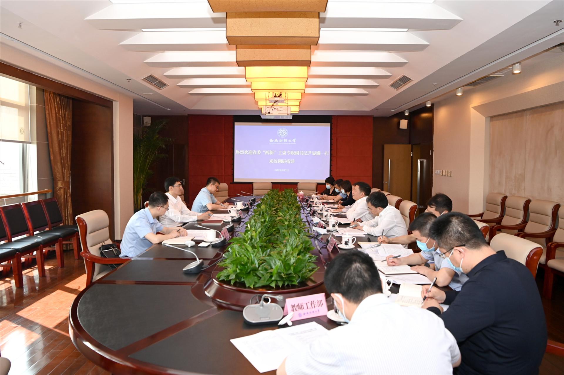 按照全国、全省组织部长会议和基层党建工作重点任务推进会部署安排,近期,省委组织部、省委教育工委组建7个调研组分赴全省各公办高校开展党的建设专题调研。5月7日,四川省委“两新”工委专职副书记尹显耀带领调研一组到必赢开展调研。省委教育工委党建与干部人才处副处长唐志颖、省委组织部组织三处干部李询同志陪同调研。学校党委书记赵德武,党委副书记马骁,党委常委、副校长史代敏及相关单位负责同志参加调研座谈。
