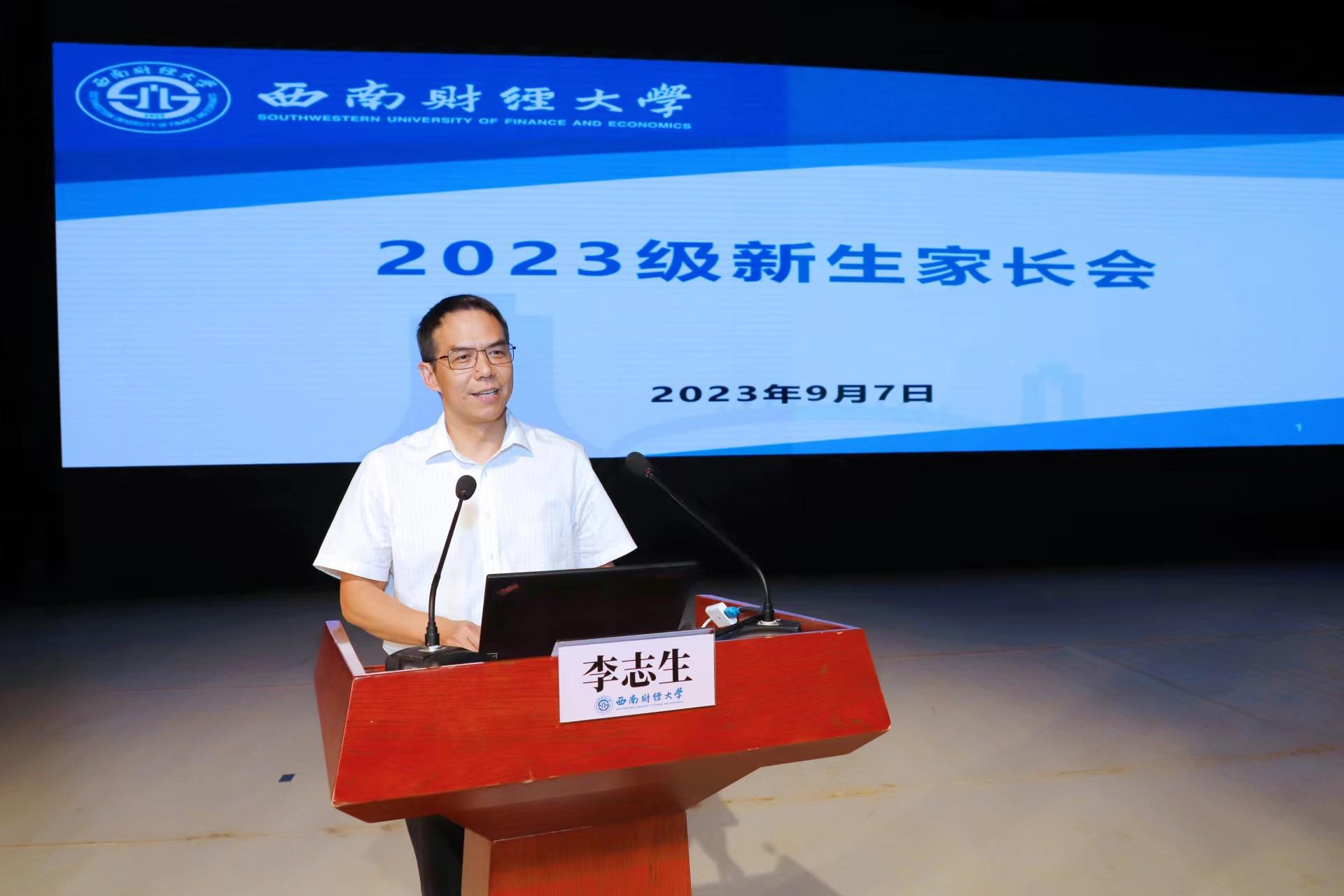 会上,李志生代表学校对各位家长及新生表示诚挚欢迎和热烈祝贺。他从学校的基本情况、人才培养特色、学生选择与发展、学校发展战略四个方面系统全面地介绍了学校深厚底蕴和突出优势,重点介绍了“新财经”拔尖人才培养体系及成效,详尽阐释了家长关心的研究生推免、学业处理、转专业等相关政策和近三年毕业生就业情况,介绍了建设教育强国背景下学校全面推进“新财经”战略升级的战略构想和实践进展。他强调,学校将继续充分发挥协同育人的主导作用,履行好教育教学职责,完善家校沟通平台,建立稳定、高质量的社会实践教育基地和资源;并呼吁家长注重营造良好家庭环境,加强孩子综合素质培养,家校连心,共同将学生培养成德、智、体、美、劳全面发展,堪当民族复兴重任的时代好青年。