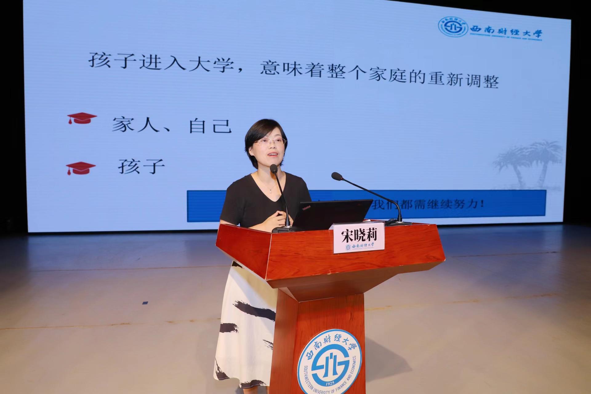 随后,心理健康教育中心副主任宋晓莉以“在爱中共同成长”为主题从家长心理调适、学生心理成长、学校心理资源三个方面进行分享,帮助家长了解学生情况、协助学生尽快适应大学生活、预防心理危机。