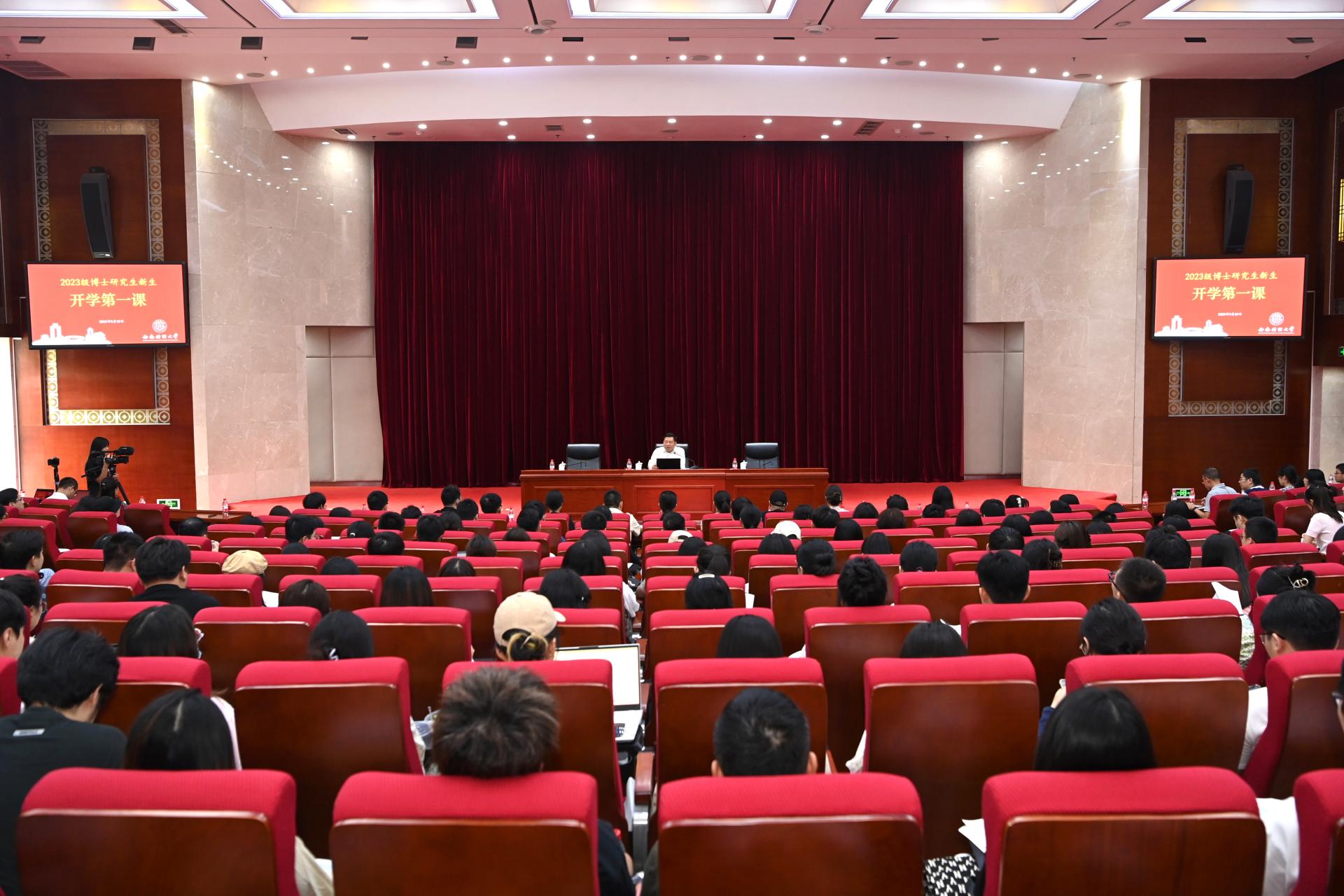 9月19日下午,2023级博士研究生新生开学第一课在弘远楼105会议室开讲。学校党委书记赵德武授课,全体2023级博士研究生新生听课,研究生院等相关职能部门负责人到课听讲。