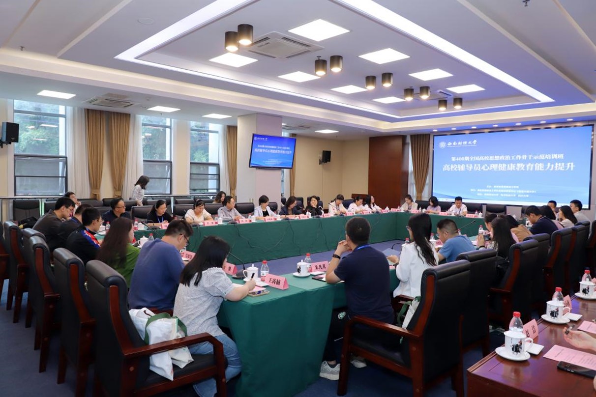 9月26日,教育部第400期全国高校思想政治工作骨干示范培训班心理工作研讨会在弘远楼109会议室举行,来自全国30余所高校的学生思想政治工作骨干进行工作研讨交流。