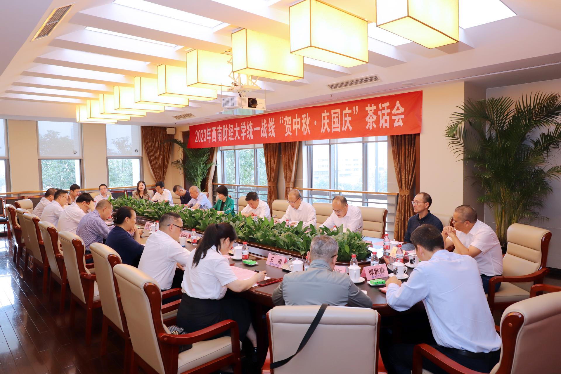 9月27日下午,在中秋佳节和第74个国庆节来临之际,学校统一战线2023年“贺中秋•庆国庆”茶话会在柳林校区腾骧楼604会议室举行。党委书记赵德武,党委副书记、校长李永强,各民主党派基层组织和统战团体负责人,无党派人士代表,各级人大代表、政协委员和政府参事代表,台籍教师代表,组织人事部和党委统战部负责人,院级党组织书记代表等欢聚一堂,共话团圆、共庆佳节、共谋发展。茶话会由党委统战部常务副部长王石主持。