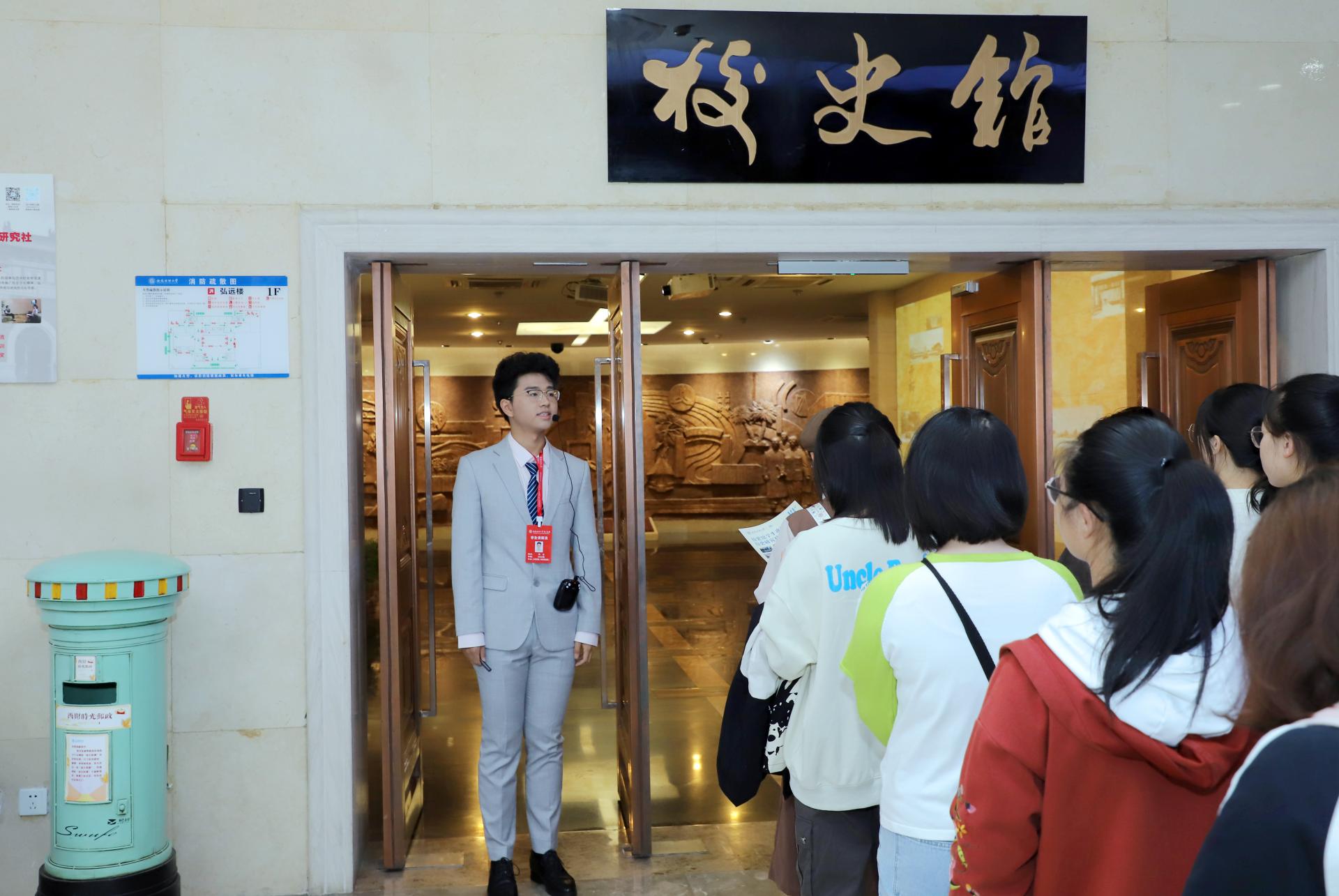 学校于每年秋季学期集中组织新生参观校史馆并开展现场教学活动,旨在通过校史教育进一步增强全体新生对学校的身份认同、价值认同、情感认同和文化认同,引导广大学生主动将个人成长融入学校发展大局,织密薪火传承的精神纽带。学生讲解团自2010年成立以来,主要承担校史馆的校史讲解工作,现已接待海内外群体等15万余人次,并连续13年组织新生参观教育活动。同时,为迎接百年校庆、进一步做好校史编研,宣传校史文化,学生讲解团、学生校史研究社于秋季学期积极开展了校史编研、口述校史、校史文化宣传等工作,通过师生共话校史,弘扬必赢精神,筑牢信仰之基。