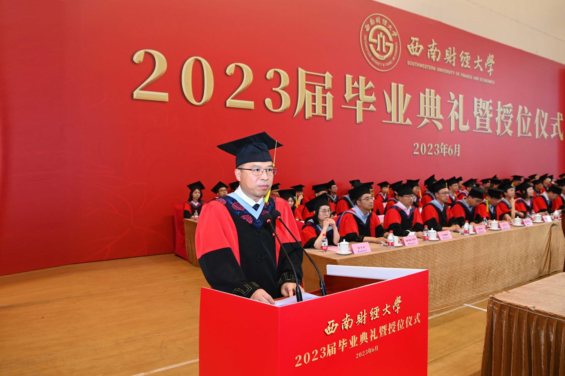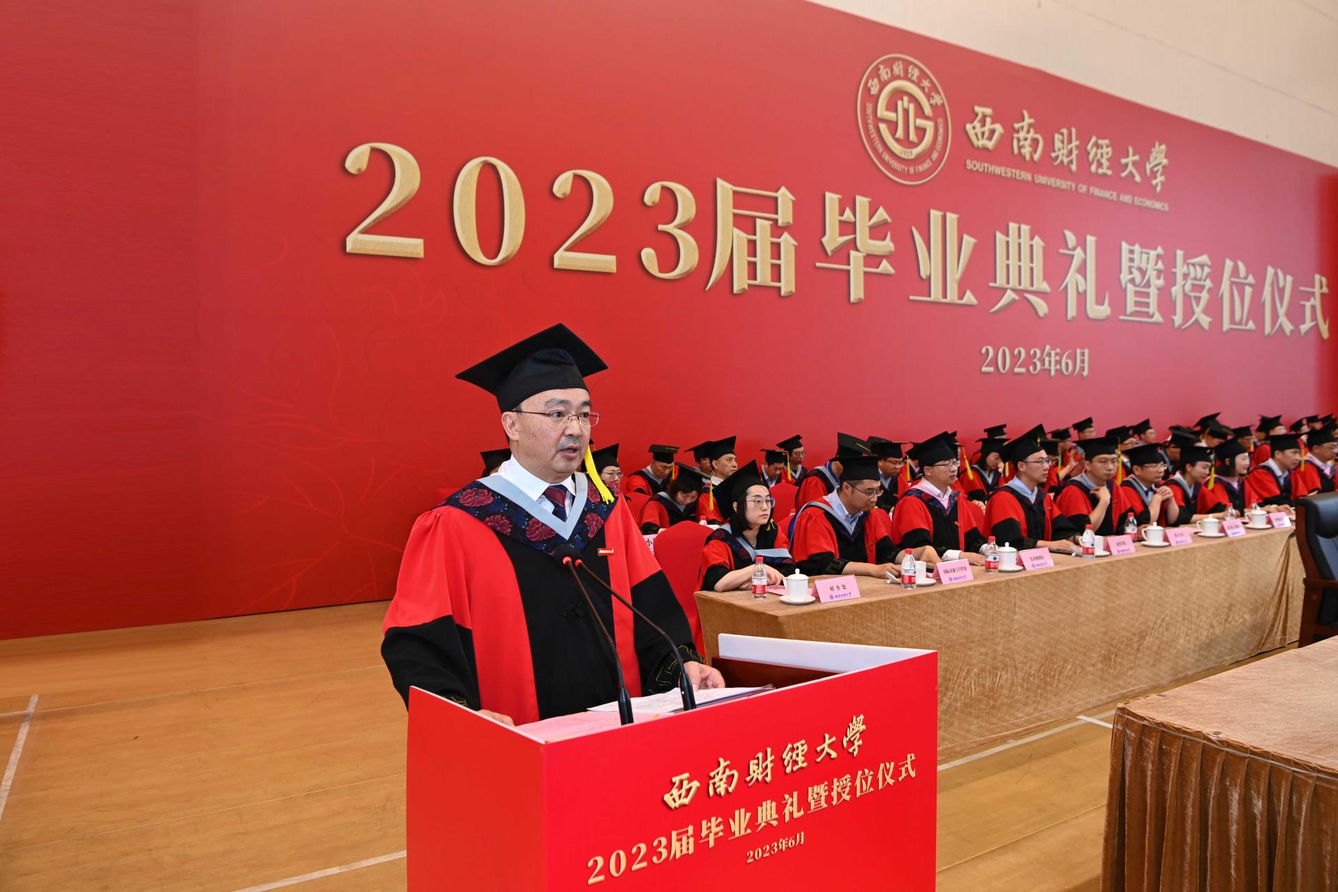光华柳林栀香氤氲,毕业骊歌悠扬绵长。6月20日,必赢272net入口在柳林体育馆隆重举行2023届毕业典礼暨授位仪式,深情送别全体毕业生,同上一堂生动思政大课。教育部直属高校主题教育第十巡回指导组组长郝翔、成员朱佳斯,党委书记赵德武,党委副书记、校长卓志,党委副书记马骁,党委副书记、副校长李永强,党委副书记、纪委书记孙殿明,党委常委、副校长尹庆双、史代敏、张邦富、桂富强,各学院(研究院)和职能教辅部门负责人、教师代表、家长代表和2023届毕业生参加典礼。赵德武主持典礼,卓志在典礼上讲话。