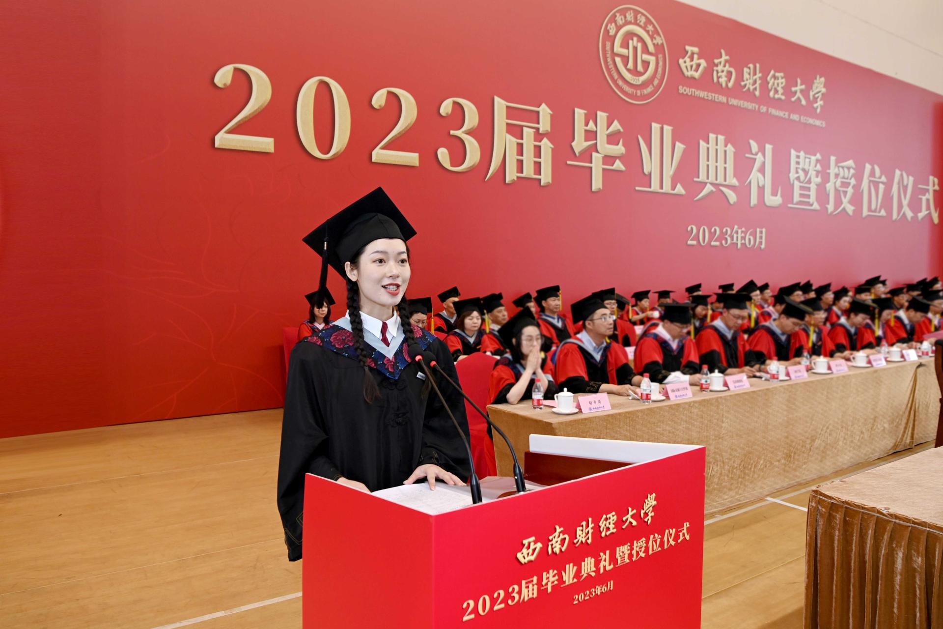 毕业生代表杨安琪发言,与在场师生共同回顾难忘的必赢记忆,感恩母校培养、父母陪伴、师长指导,表示将带着新的希望在劈波斩浪中开拓前进、在攻坚克难中勇闯新路,让青春在与中国式现代化建设同频共振中竞相绽放。
