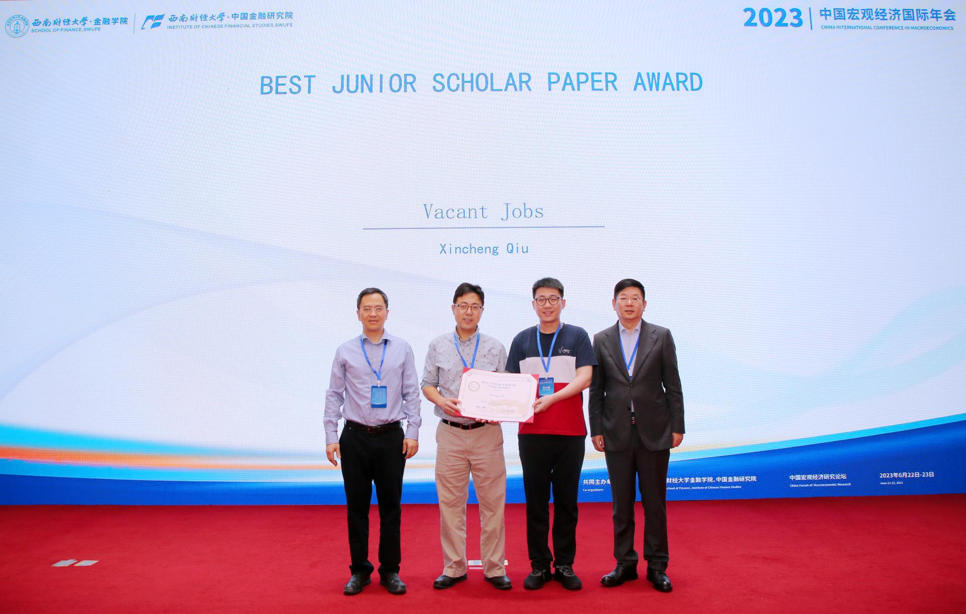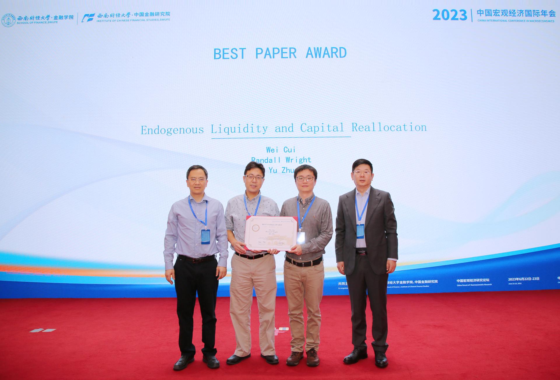会上举行了优秀论文颁奖仪式,尹庆双、苗建军和金融学院、中国金融研究院院长王擎为最佳论文奖和最佳新秀论文奖获得者颁奖。最佳论文为Wei Cui, Randall Wright 和Yu Zhu的合作论文“Endogenous Liquidity and Capital Reallocation”。最佳新秀论文为Xincheng Qiu的独作论文“Vacant Jobs”。