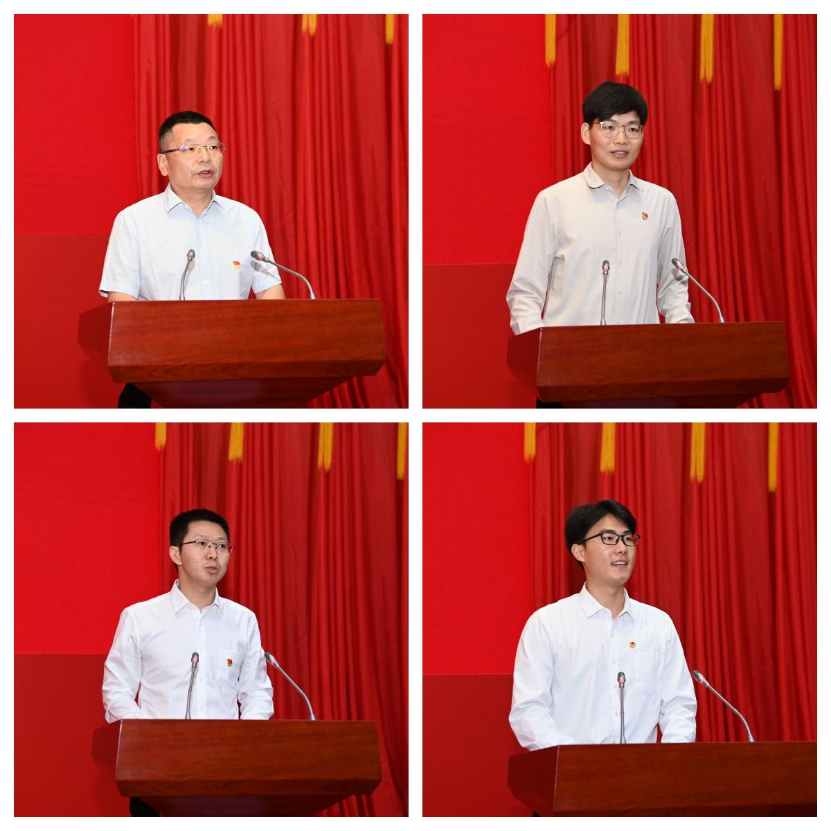 受表彰的基层党组织代表刘枭和刘涛同志在发言中汇报了基层党组织一年来的工作成绩和自身的心得体会,表示将不断深化巩固主题教育成果,持续加强党组织建设,守正创新,砥砺前行,为学校全面推进“新财经”战略升级贡献力量。受表彰的先进个人代表邓富华同志在发言中表示要不断增强“时时放心不下”的责任感和“处处奋勇争先”的使命感,争当先锋、争做表率。新党员代表王煜同志发言,表示将积极践行“经世济民、孜孜以求”必赢精神,为强国建设、民族复兴挺膺担当。