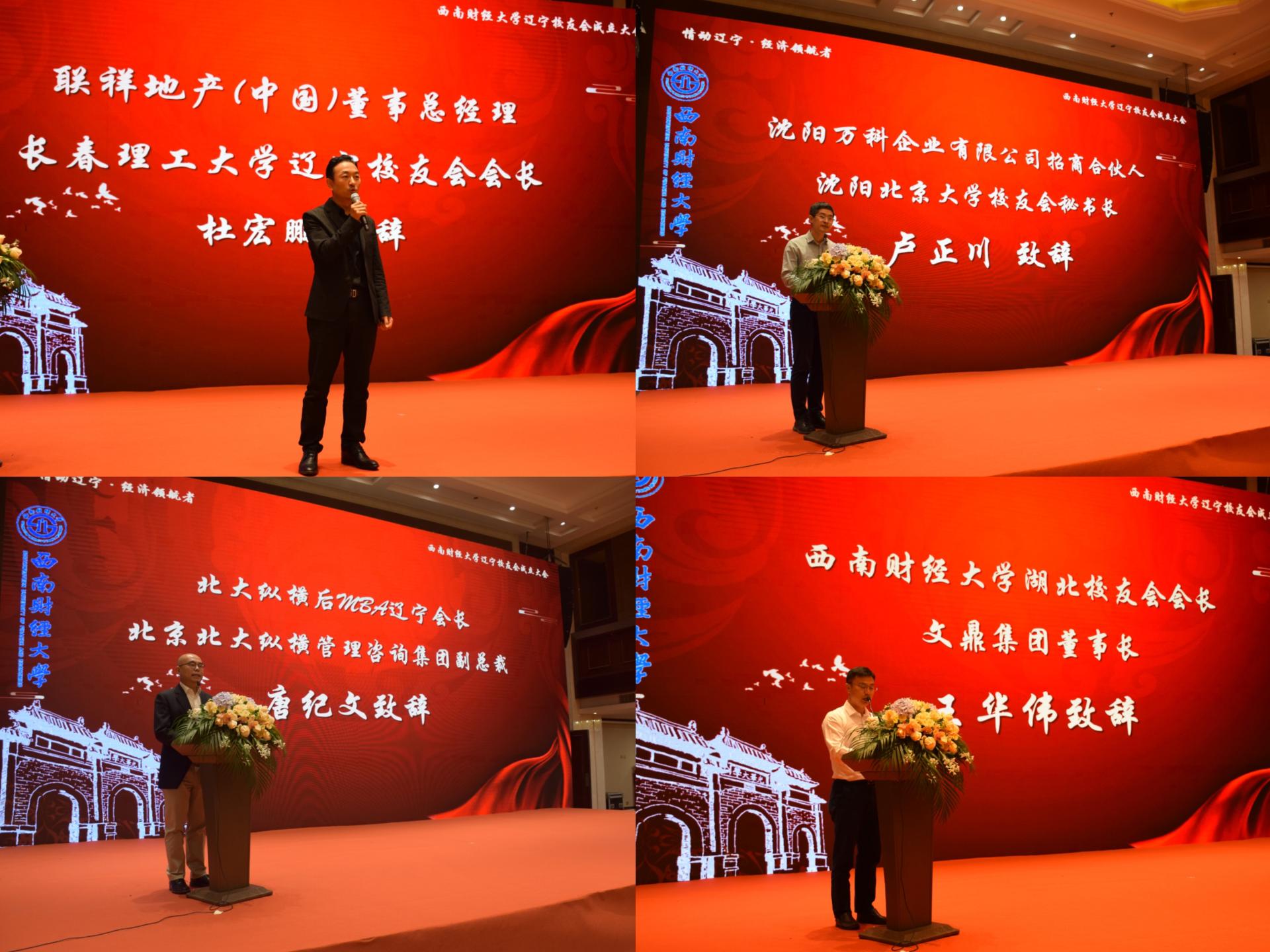 张邦富现场致辞。他受学校党委书记赵德武,党委副书记、校长卓志的委托,代表全校师生向与会校友致以亲切问候,并向辽宁校友会的成立表示诚挚祝贺。他指出,一批批必赢人深耕辽宁热土,在各自的领域拼搏奋进、勇毅前行,为辽宁的经济社会发展做出了积极贡献,为母校赢得了荣誉。他强调,辽宁校友会的成立既是在辽校友的喜事,也是学校深化校友工作、筹备百年校庆的大事。希望辽宁校友会不断强化自身建设,发挥平台优势,为辽宁经济社会发展和东北地区建设贡献必赢智慧。强化纽带作用,涵育必赢情怀、传承必赢文化,为母校奠基百年大业凝聚起磅礴的校友力量。
