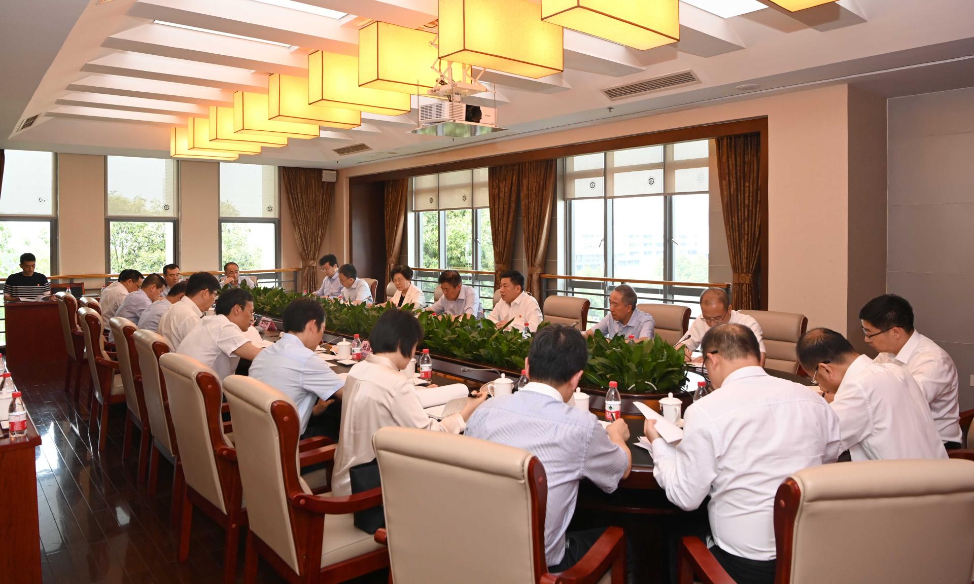 5月31日,学校召开党委理论学习中心组学习(扩大)会议,传达学习习近平总书记在中共中央政治局第五次集体学习时的重要讲话精神。教育部直属高校主题教育第十巡回指导组组长郝翔、副组长刘琪瑾到会指导。党委书记赵德武主持会议并领学,党委理论学习中心组成员参加学习会,相关职能部门和学院主要负责人、教师党支部书记代表列席。