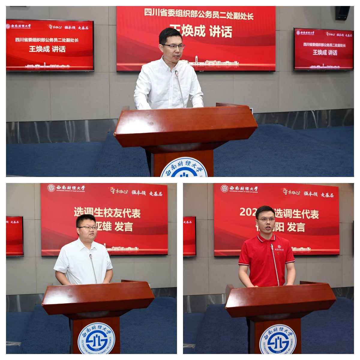 为深入学习贯彻党的二十大精神,落实学习贯彻习近平新时代中国特色社会主义思想主题教育的工作部署,鼓励引导毕业生到基层建功立业,助推毕业生高质量充分就业,6月1日上午,学校2023届选调生出征仪式暨专题思政课在弘远楼101会议室举行。党委书记赵德武、四川省委组织部、学校相关职能部门、各学院(研究院)相关负责人、选调生校友代表和2023届选调生参加活动,出征仪式由党委副书记、副校长李永强主持。