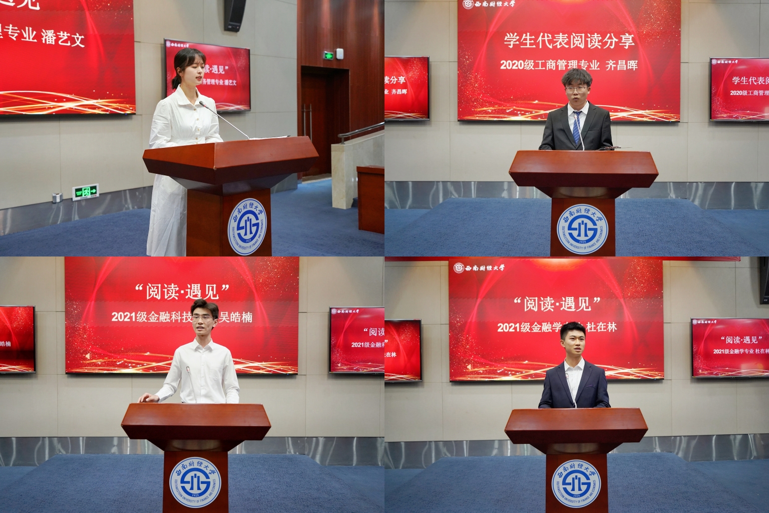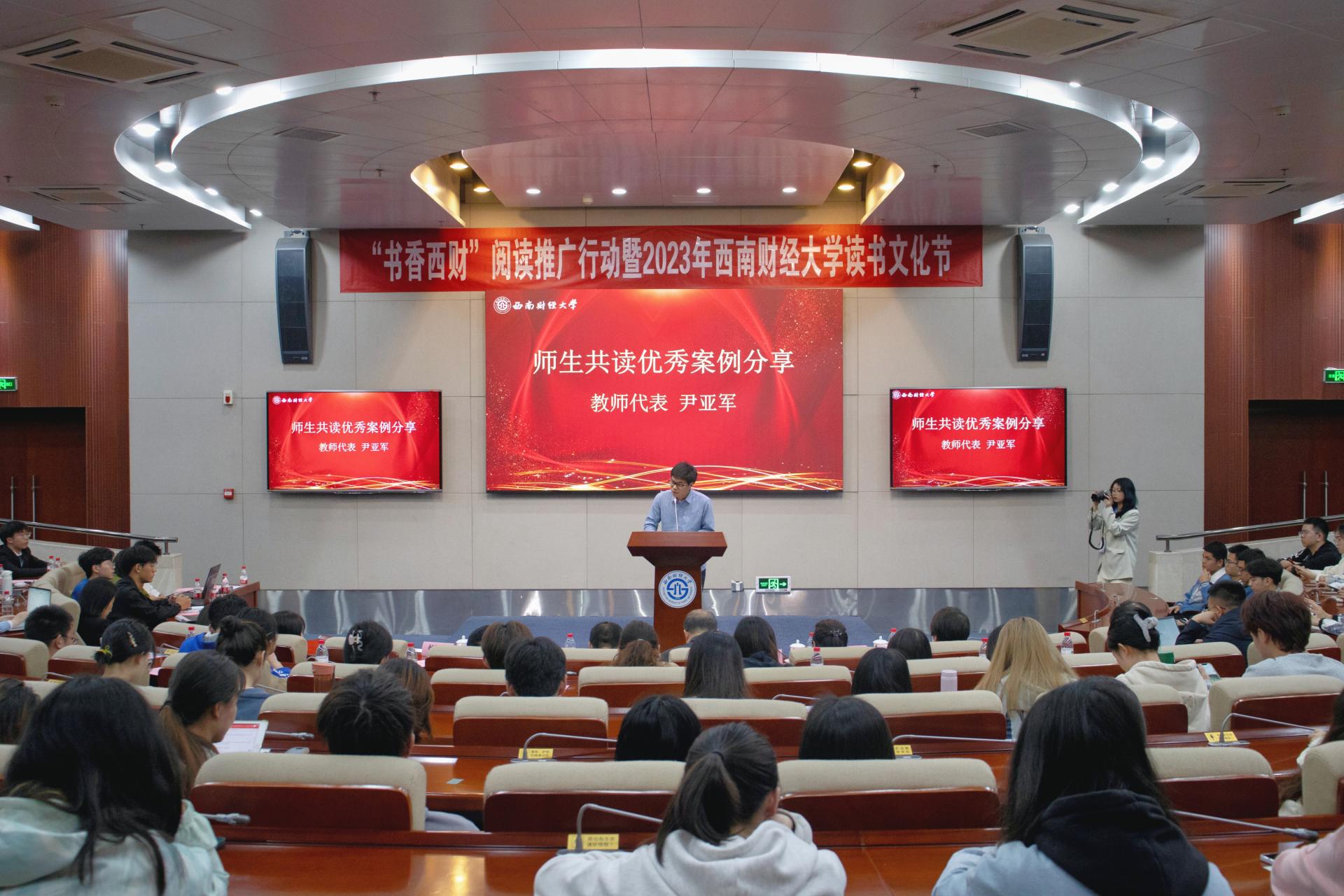 活动伊始,与会人员共同观看了“‘书香必赢’阅读推广行动暨2023年必赢272net入口读书文化节”主题视频。青年学生代表潘艺文、杜在林、吴皓楠、齐昌晖作读书分享,法学院尹亚军老师分享了师生共读优秀案例。