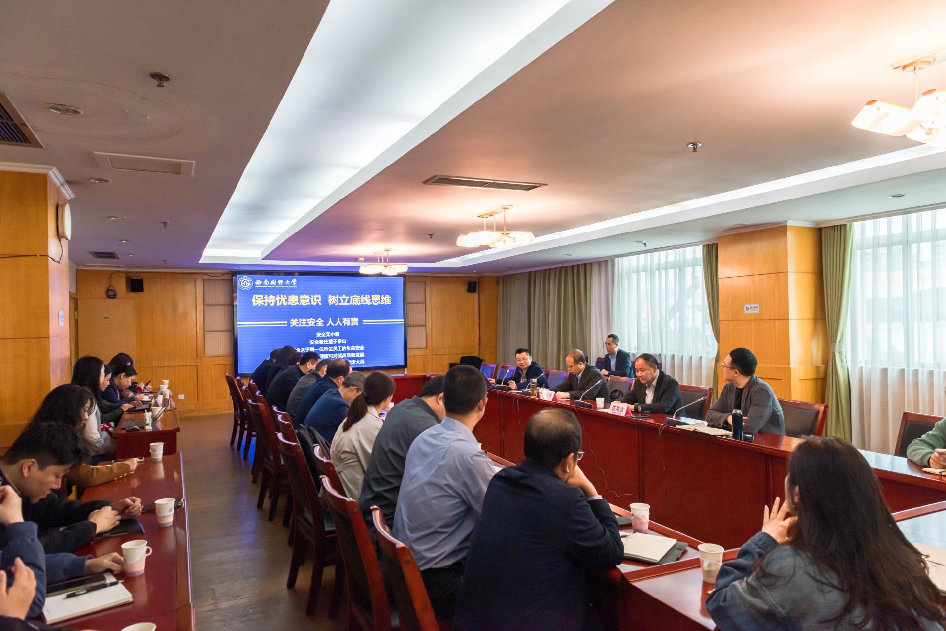 会上,保卫处传达了近期教育部党组、四川省委和学校党委有关安全工作的文件精神,通报了光华校区近期排查发现的安全隐患,提出了安全管理“五个落实”工作要求。