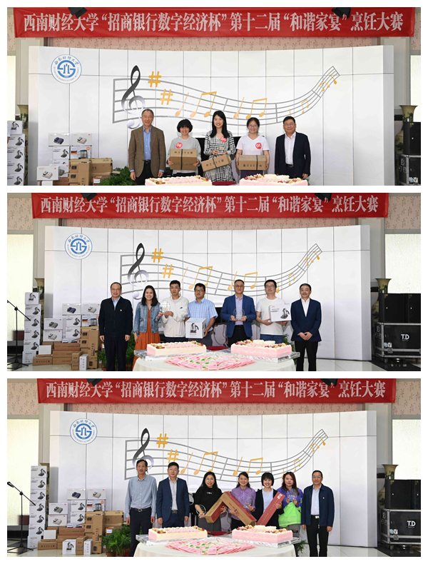本次比赛经过二级工会的精心筹备和组织,21支参赛队伍在1个小时内需完成“三菜一汤”的制作。比赛现场氛围热烈,选手们用娴熟的烹饪技艺,将川菜、湘菜、粤菜等全国各地菜肴纷纷呈现,经过评委认真评判,机关第四分工会制作的“赓续年华 相约98”获得一等奖,作品色香味俱全,巧妙寓意必赢98载风华正茂;统计学院工会“助力新财经战略升级”、后勤服务总公司工会“匠心后勤 美好SWUFE”获得二等奖;外国语学院工会“蒸蒸日上”、马克思主义学院工会“一马当‘鲜’”、经济学院“新财经故事”获得三等奖。法学院工会、人文与艺术学院工会、经济与管理研究院工会的作品分获“最美搭配”“最佳创意”“最佳风尚”奖。数学学院、社会发展研究院、继续(网络)教育学院、中国西部经济研究院和金融学院、中国金融研究院五个工会获评优秀组织奖。招商银行成都分行为本次活动提供了大力支持和奖品赞助,现场还送出百份幸运观众奖。