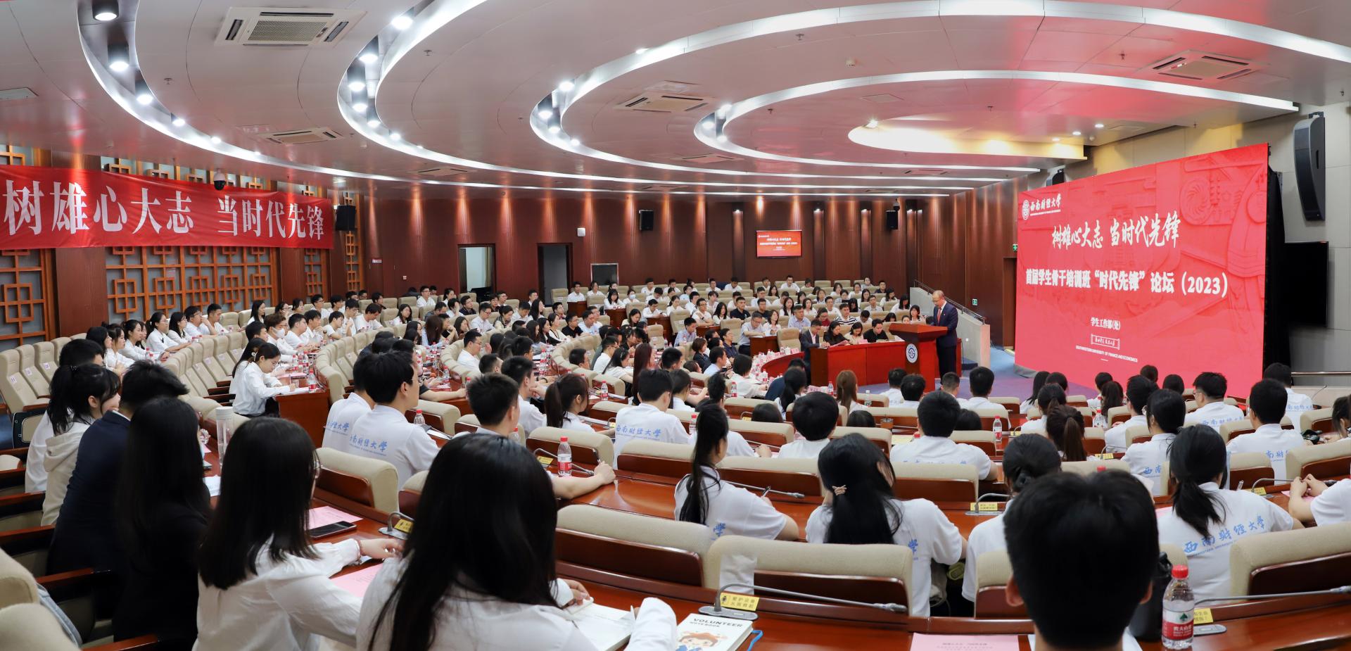 5月4日,在五四青年节之际,首届学生骨干培训班“时代先锋”论坛(2023)在弘远楼101会议室举行。党委书记赵德武出席论坛并发表讲话。党委副书记、副校长李永强,相关职能部门负责人、学生骨干培训班导师代表、第一至第八期学员代表以及第九期参选学员参加论坛。