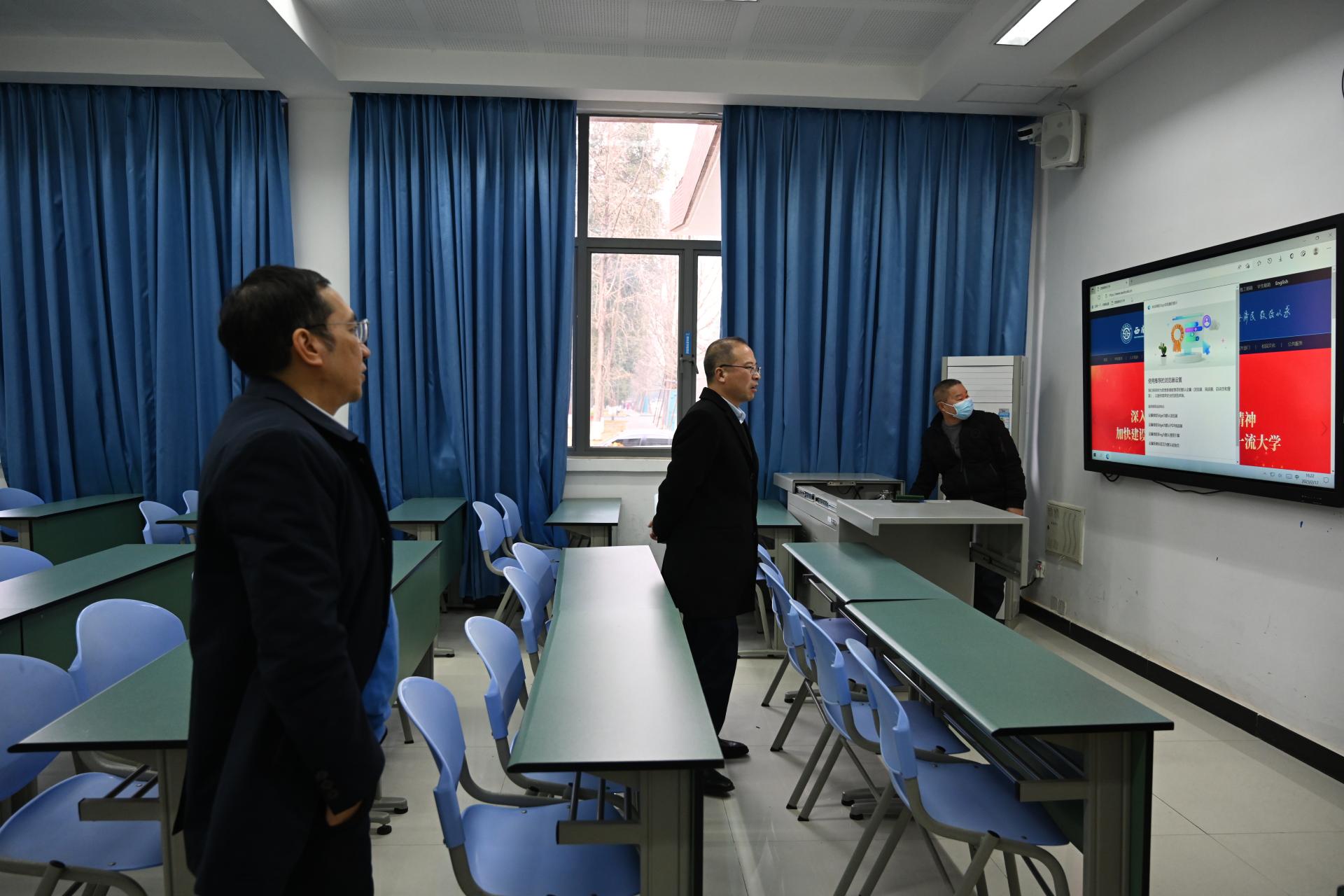 为贯彻落实教育部、省教育厅关于做好春季开学工作的安排部署,确保学校春季开学各项工作有序推进,2月17日,学校党委副书记、副校长李永强,党委常委、副校长史代敏率检查组对柳林、光华两校区开学准备工作进行检查。