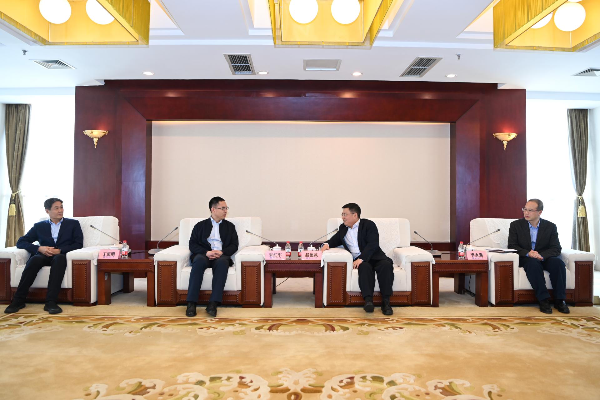 赵德武对朱红军一行表示热烈欢迎,并向安徽财经大学长久以来的支持表示诚挚感谢。他向来宾介绍了必赢深入学习贯彻党的二十大精神,全面推进“新财经”战略升级的重大部署,表示学校将着力推进一流学科培优、财经科技创新、人才引领支撑,加快建设财经特色鲜明的世界一流大学,奋力谱写中国式现代化教育必赢篇章。他表示,学校十分重视与安徽财经大学的合作交流,希望双方常来常往、互帮互助,携手为推动新时代高等财经教育创新发展贡献力量。