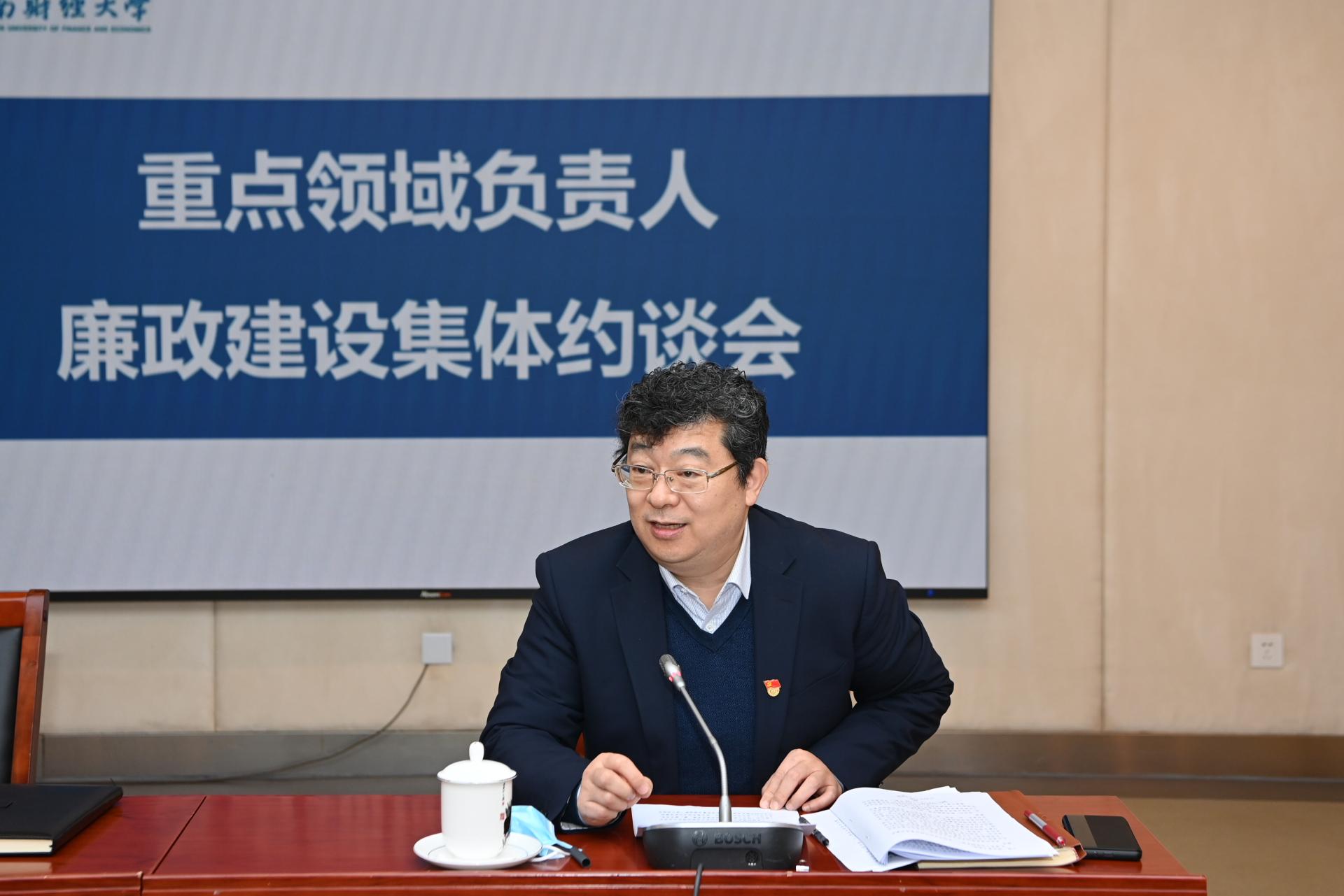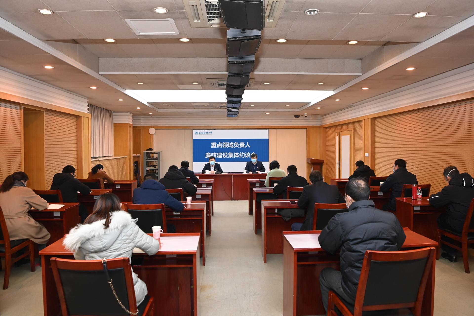 为进一步落实全面从严治党“两个责任”,抓好学校重点领域廉政建设,1月5日上午,学校在柳林校区腾骧楼101会议室召开重点领域负责人廉政建设集体约谈会,党委书记赵德武,党委副书记、纪委书记孙殿明约谈了有关部门负责人。