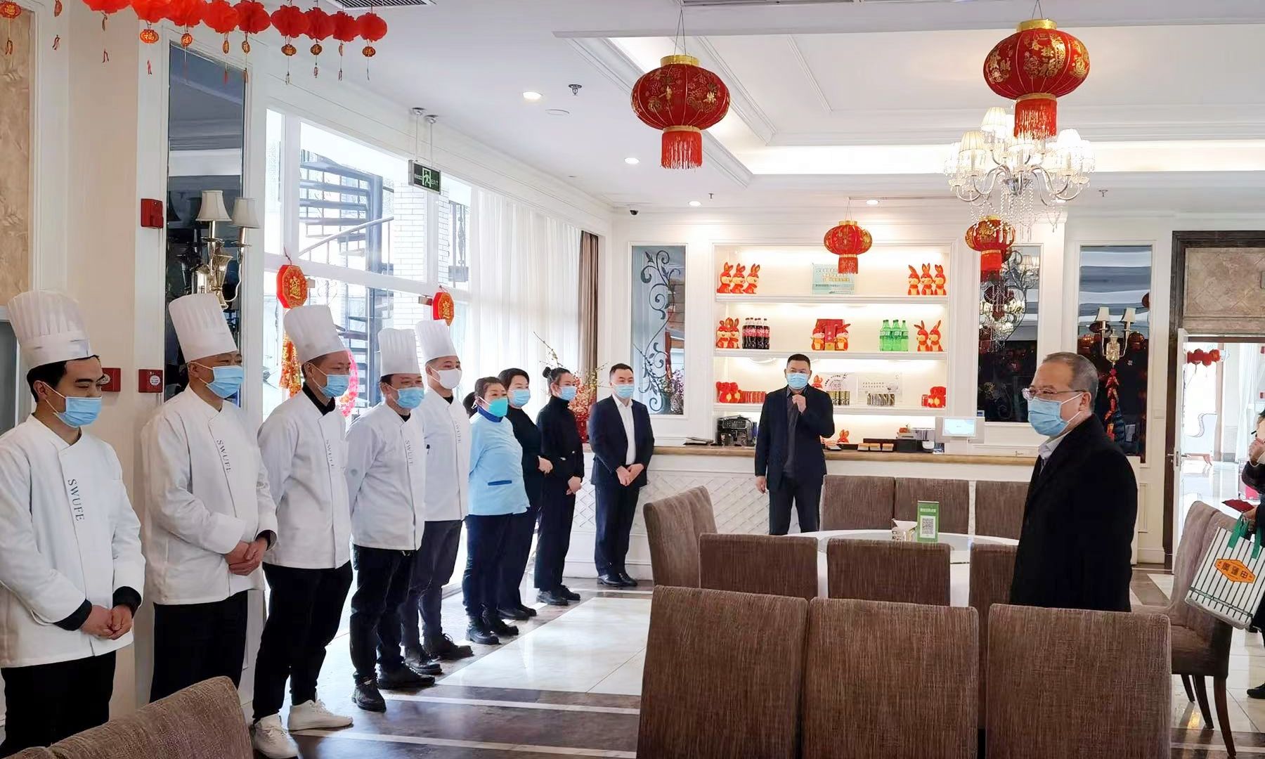 1月22日,癸卯大年初一,受党委书记赵德武,党委副书记、校长卓志委托,党委副书记、副校长李永强看望慰问春节期间坚守在工作一线的值班员工,送去学校党委的温暖和关怀,向他们致以新春祝福和美好祝愿。校长办公室、保卫处、后勤服务总公司负责同志参加慰问。