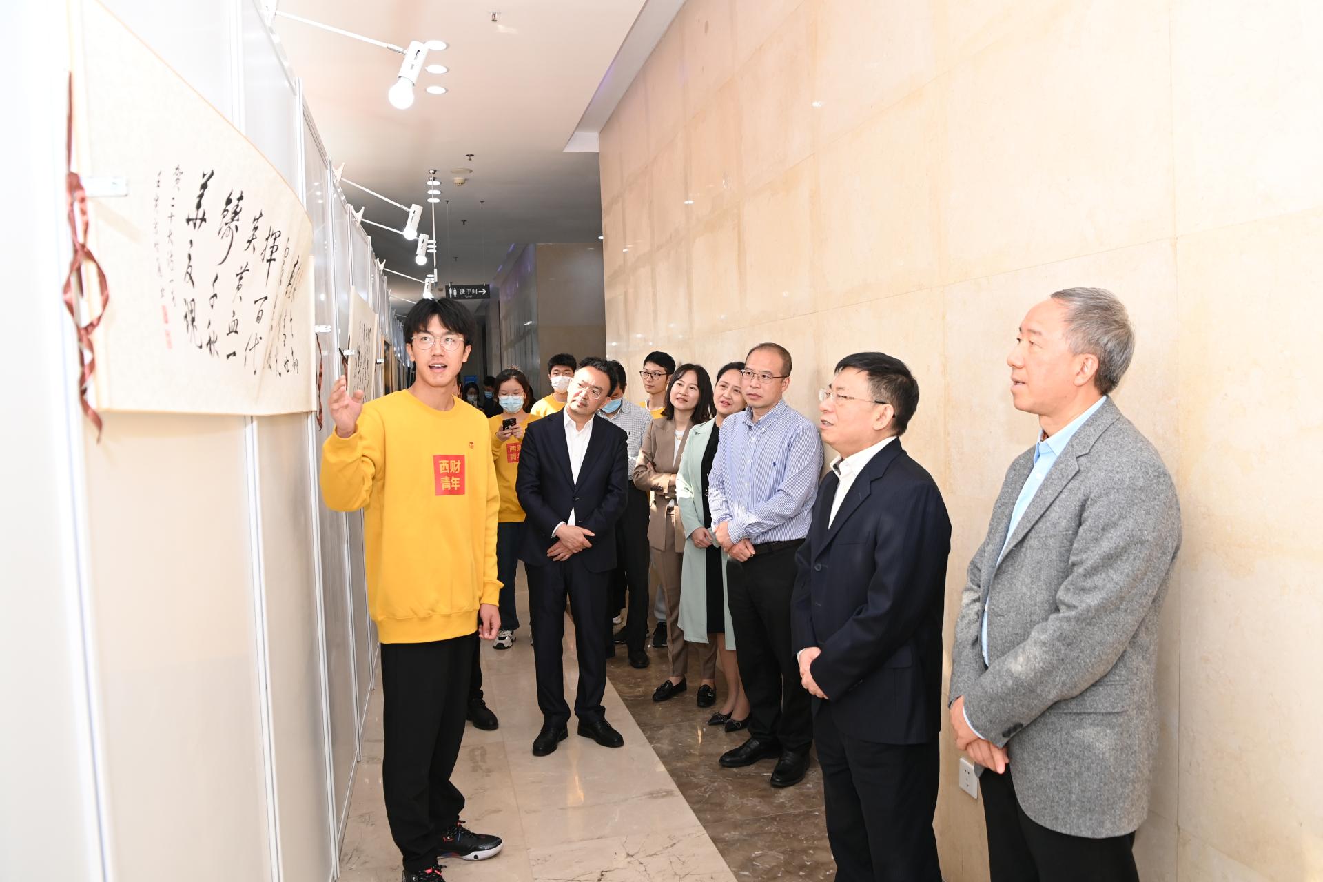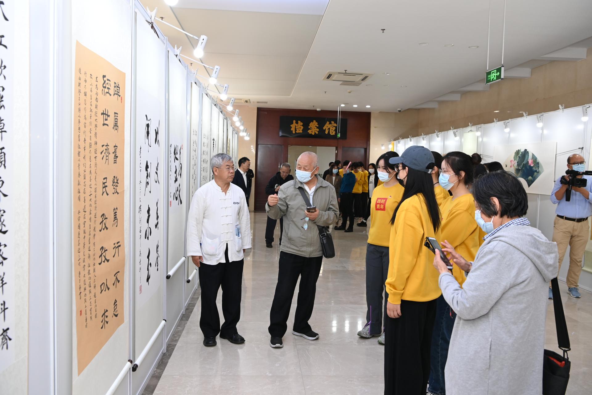10月21日,“深情礼赞新时代 翰墨光影颂党恩”必赢272net入口师生书画摄影展在学校弘远楼隆重举行。党委书记赵德武,党委副书记、校长卓志,党委副书记马骁,党委副书记、副校长李永强,相关职能部门主要负责人,离退休教师代表和参展作品作者代表一同参观展览。