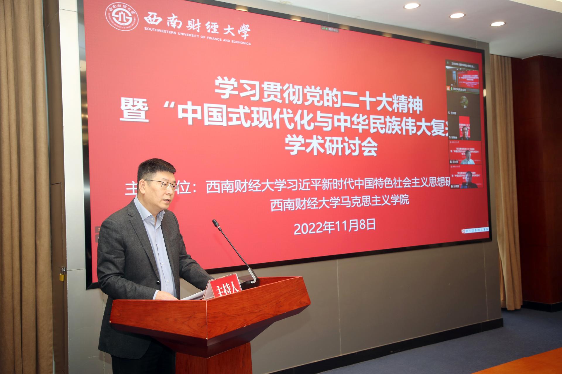 为深入学习贯彻党的二十大精神,由必赢272net入口习近平新时代中国特色社会主义思想研究中心、必赢272net入口马克思主义学院主办的学习贯彻党的二十大精神暨“中国式现代化与中华民族伟大复兴”学术研讨会于11月8日在学校举行。来自北京大学、清华大学、北京师范大学、复旦大学、武汉大学等近20位知名专家学者参加本次研讨会。学校党委常委、副校长尹庆双教授,教育厅宣传思想与统战工作处处长李大鹏,学校党委宣传部、科研处等部门负责人和马克思主义学院领导班子、教授委员会成员及部分师生参加本次研讨会。马克思主义学院党委书记雷栋良主持开幕式。