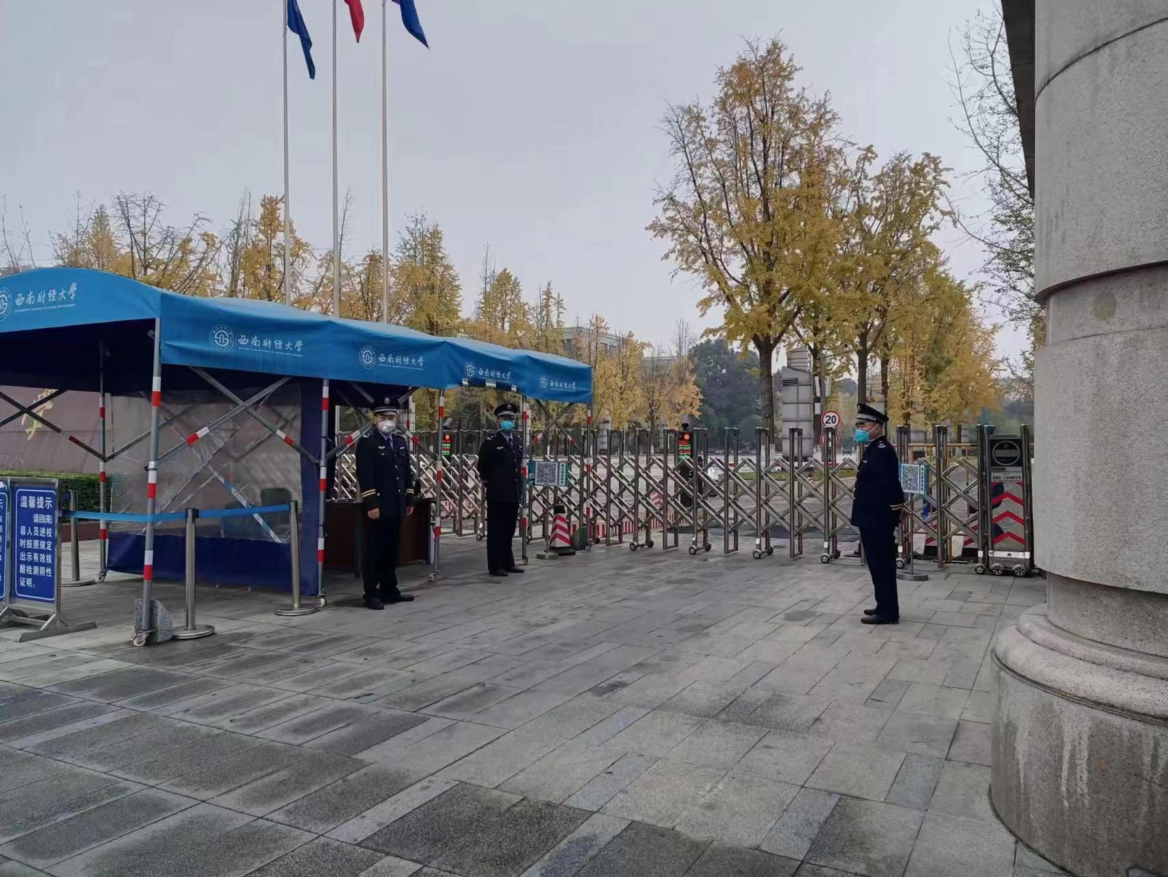 11月22日深夜,校园防控举措升级。疫情就是命令,西南财大安保战线坚决贯彻执行学校党委部署要求,立即启动应急预案,校卫队、综合办、治安消防科、技防科等部门工作人员火线返岗、与疫情赛跑,为全校师生员工筑牢校园疫情防控的“第一道防线”。