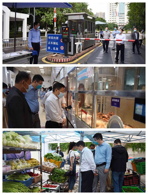 会前,赵德武一行来到光华校区便民菜市和食堂、北大门出入门岗处,检查督导各项防疫工作进展,并慰问抗疫一线工作人员。