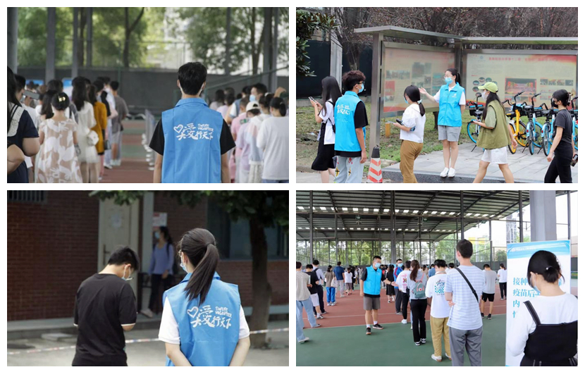 党旗所指就是团旗所向,增强青春战“疫”贯彻执行力。越是关键时刻,越能凸显共青团紧跟党走的坚定信念和坚强决心。各级团干部坚持走在前作表率,带头贯彻落实各级党委政府、属地决策部署和学校党委工作安排,带动身边师生群众和家庭成员坚决落实疫情防控个人主体责任,当好自身健康第一责任人。疫情就是命令,防控就是责任。在校团委指导下,100余名学生骨干迅速行动组成“团员青年突击队”,第一时间投入志愿服务工作岗位,引导同学们遵守防疫秩序,确保防疫工作顺利进行。“别担心、有我在”“我是团员、我先来”,“团员青年突击队”志愿者们坚持有一份热、发一份光,用实际行动告诉我们:奉献,是青春最美的色彩。同时,各级团组织和广大团员青年积极行动,9月2日上午即收到来自各学院近千名志愿者报名,组建形成了一支包括“团员青年突击队”“支部志愿服务小分队”在内的青年志愿服务队伍。在两校区核酸检测点、教学区巡查点、离退休人员服务处、食堂就餐引导处和校内商业场所,目光所到之处,皆有一抹“必赢蓝”,必赢团员青年志愿者们以实际行动守初心、践使命,为构筑校园疫情防控坚实保障提供了强大青春力量。